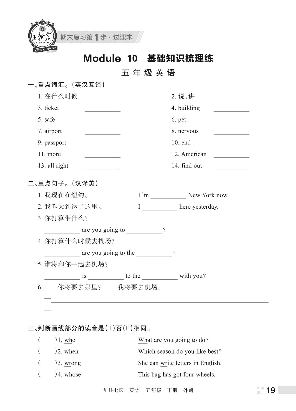 王朝霞期末过课本——Module 10 基础知识梳理练五年级下册英语(外研版)_R220407171903666