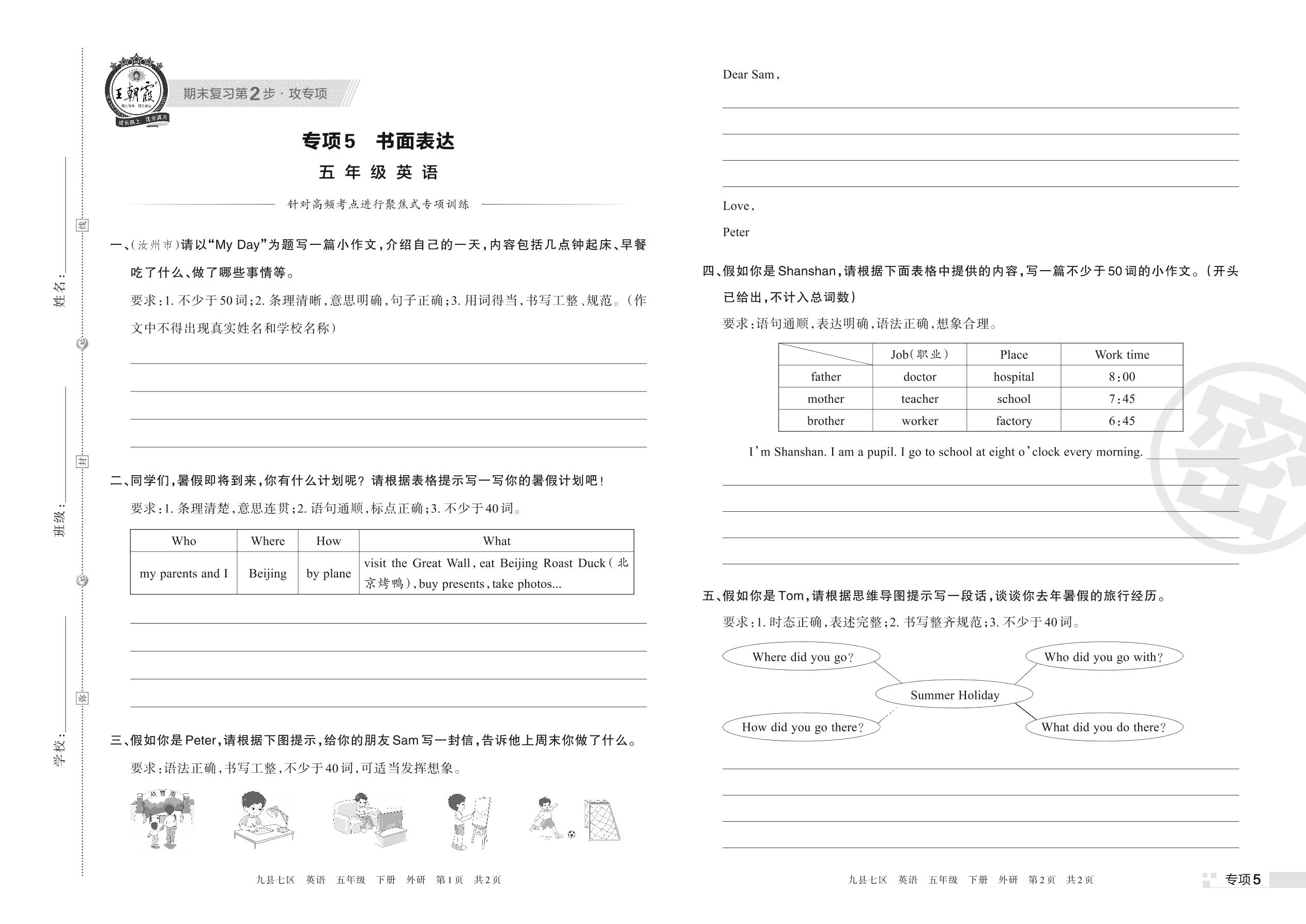 王朝霞期末专项卷——书面表达五年级下册英语(外研版)_R220407171904416【5】