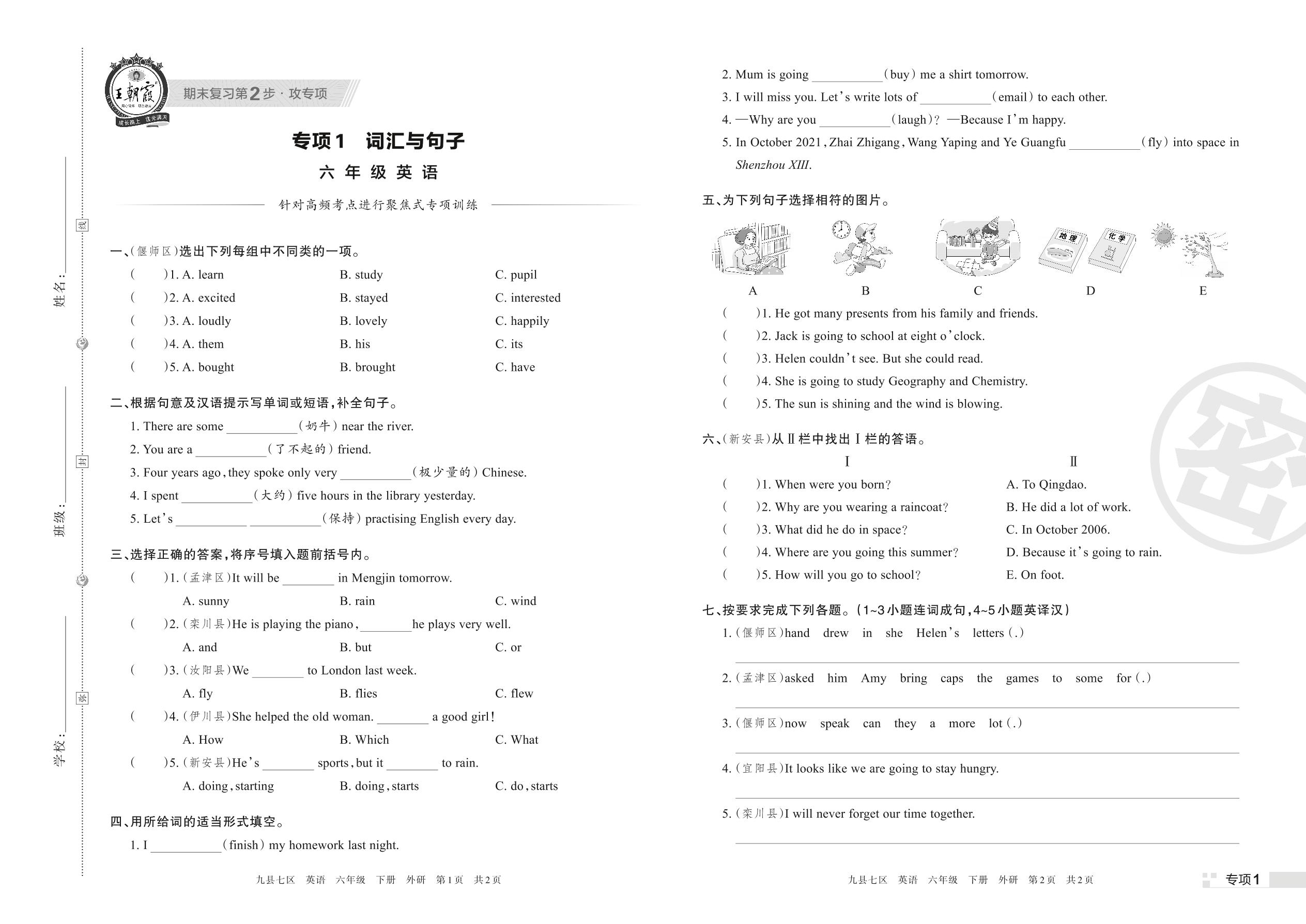 王朝霞期末专项卷——词汇与句子六年级下册英语(外研版)_R220407172850799【1】