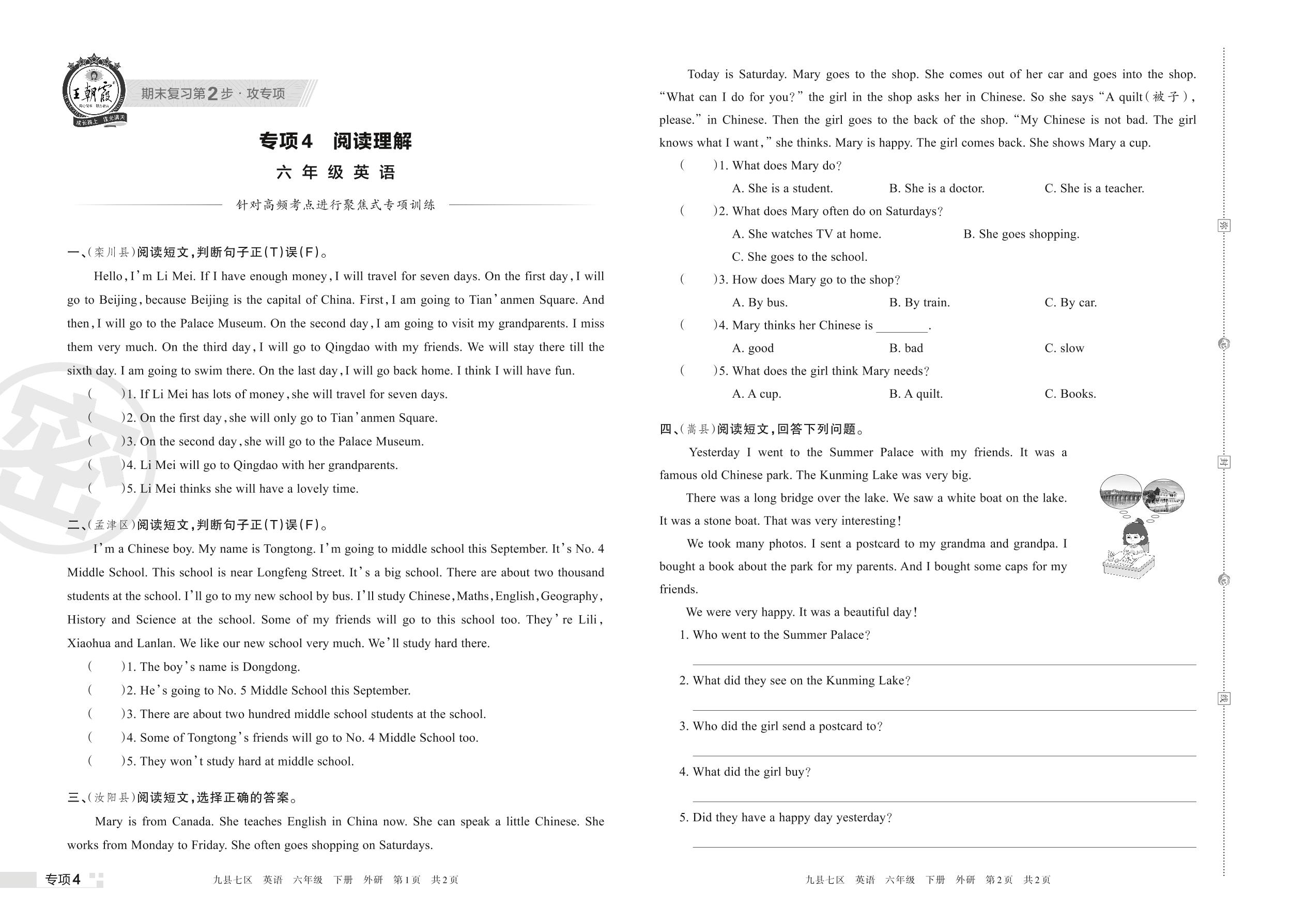 王朝霞期末专项卷——阅读理解六年级下册英语(外研版)_R220407172850000【4】