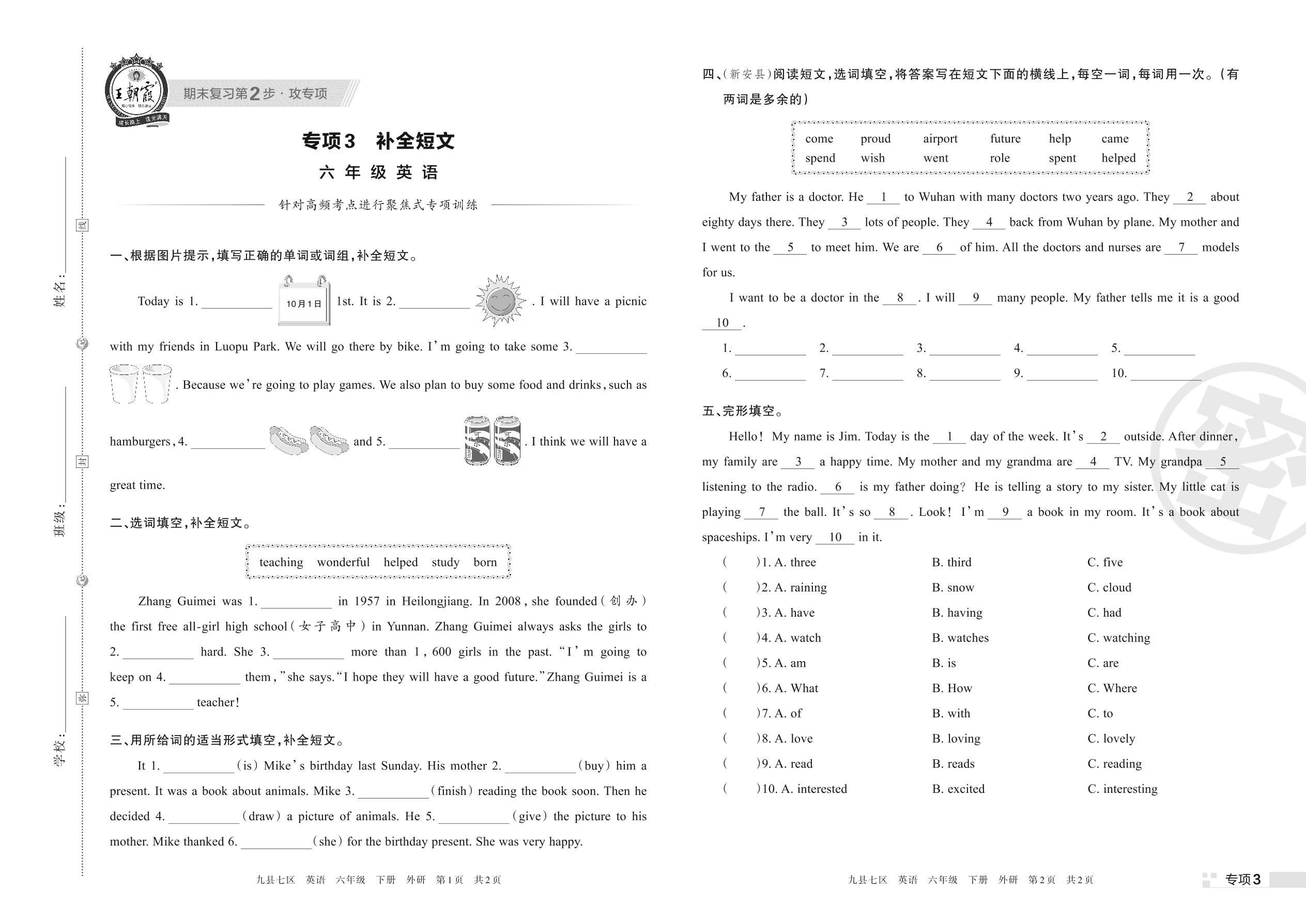 王朝霞期末专项卷——补全短文六年级下册英语(外研版)_R220407172850197【3】