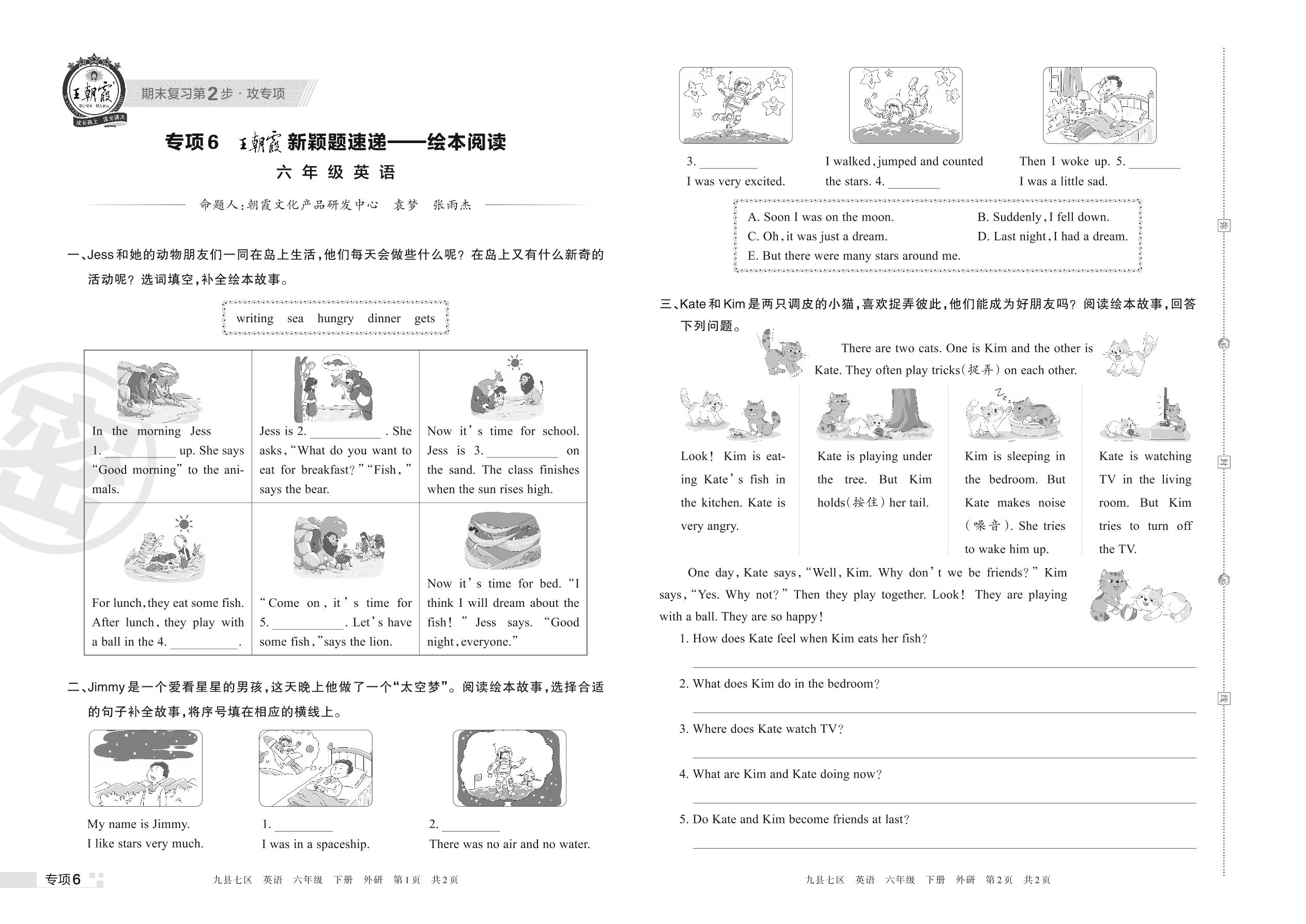 王朝霞期末专项卷——新颖题速递:绘本阅读六年级下册英语(外研版)【6】