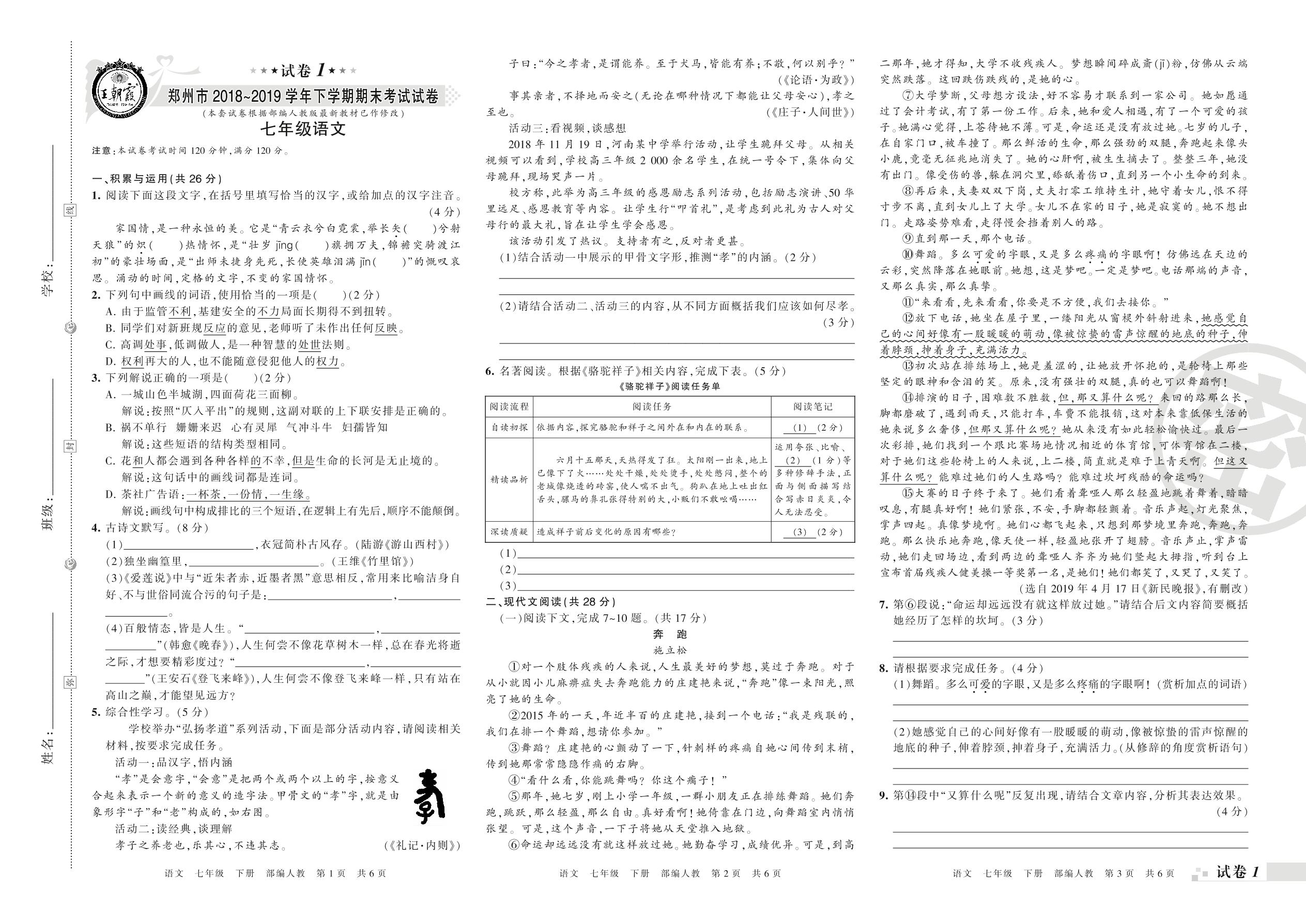 2018-2019学年第二学期郑州市七年级语文试卷(人教版)_R21080221627【1】