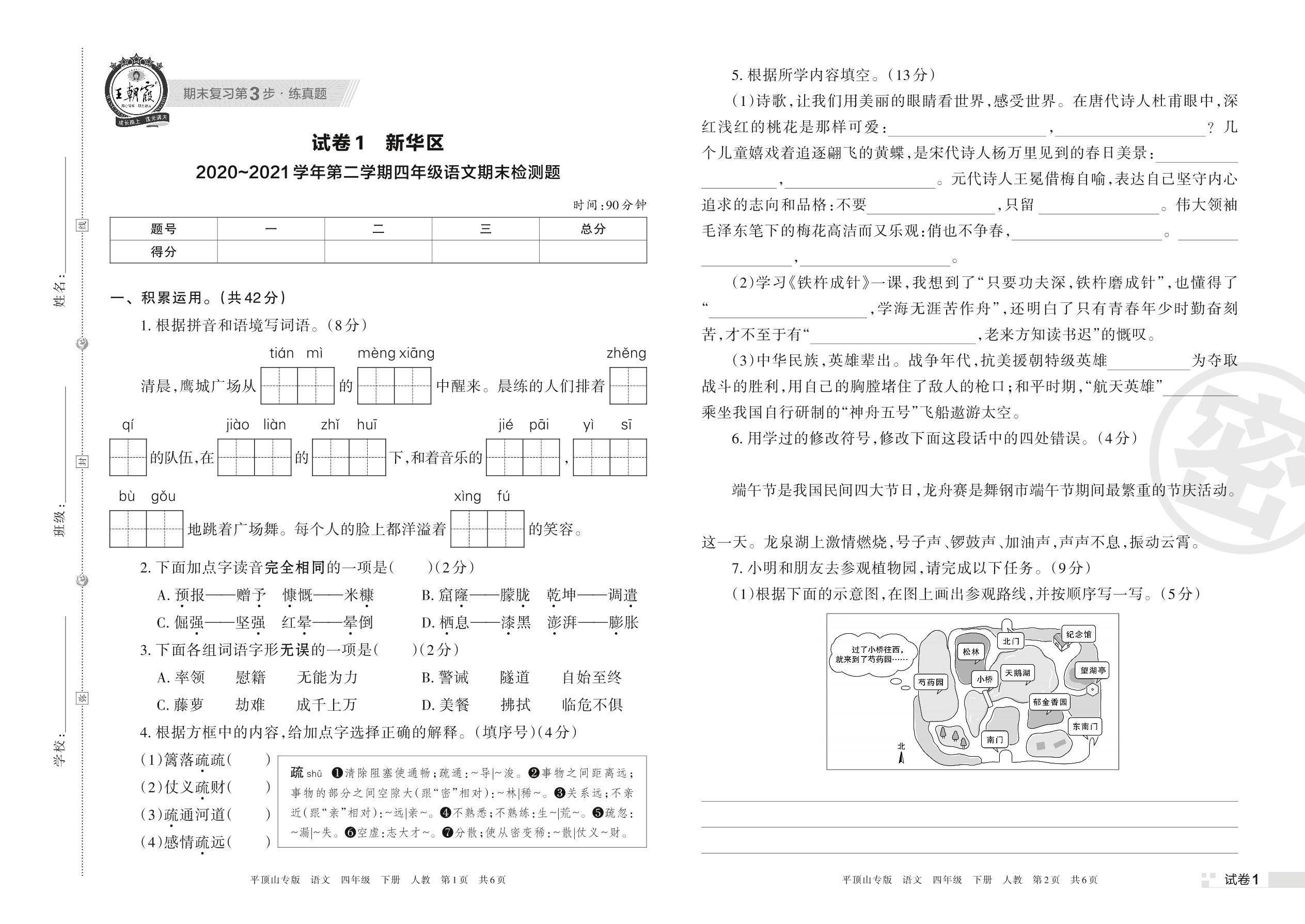 四年级语文人教版下册期末卷