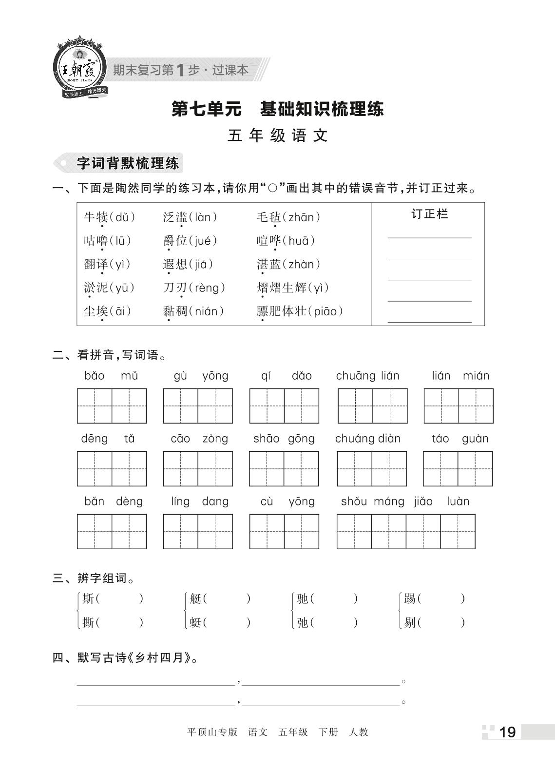 王朝霞期末过课本——第七单元 基础知识梳理练五年级下册语文(人教版)_R220408095959549