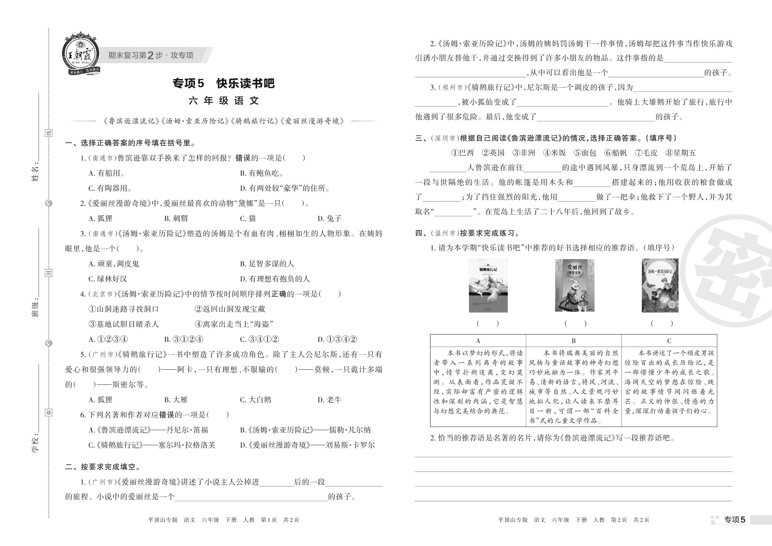 王朝霞期末专项卷——快乐读书吧六年级下册语文(人教版)_R220408100455275【5】