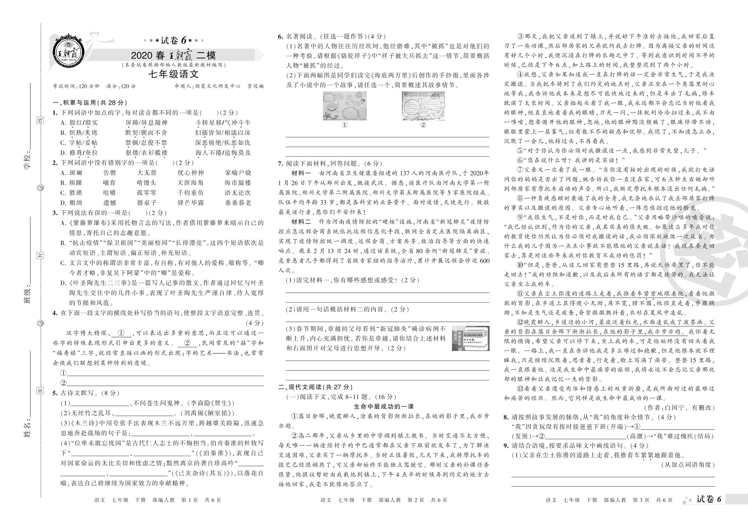 王朝霞期末模拟卷七年级下册语文(人教版)_R21080221718【6】