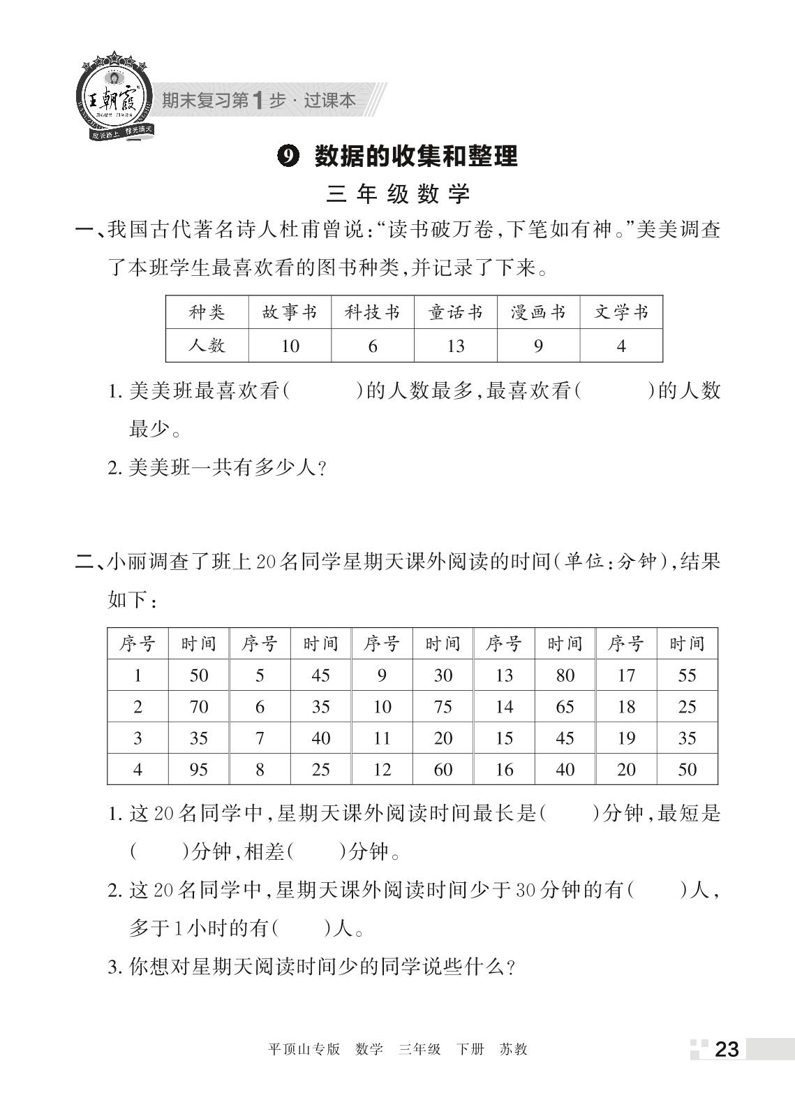王朝霞期末过课本——9 数据的收集和整理三年级下册数学(苏教版)_R220408101124429
