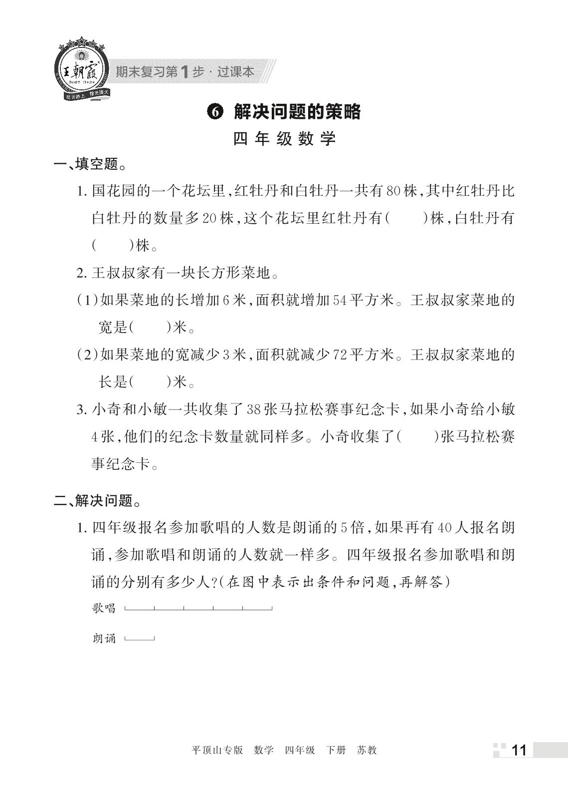 王朝霞期末过课本——6 解决问题的策略四年级下册数学(苏教版)_R220408101742797