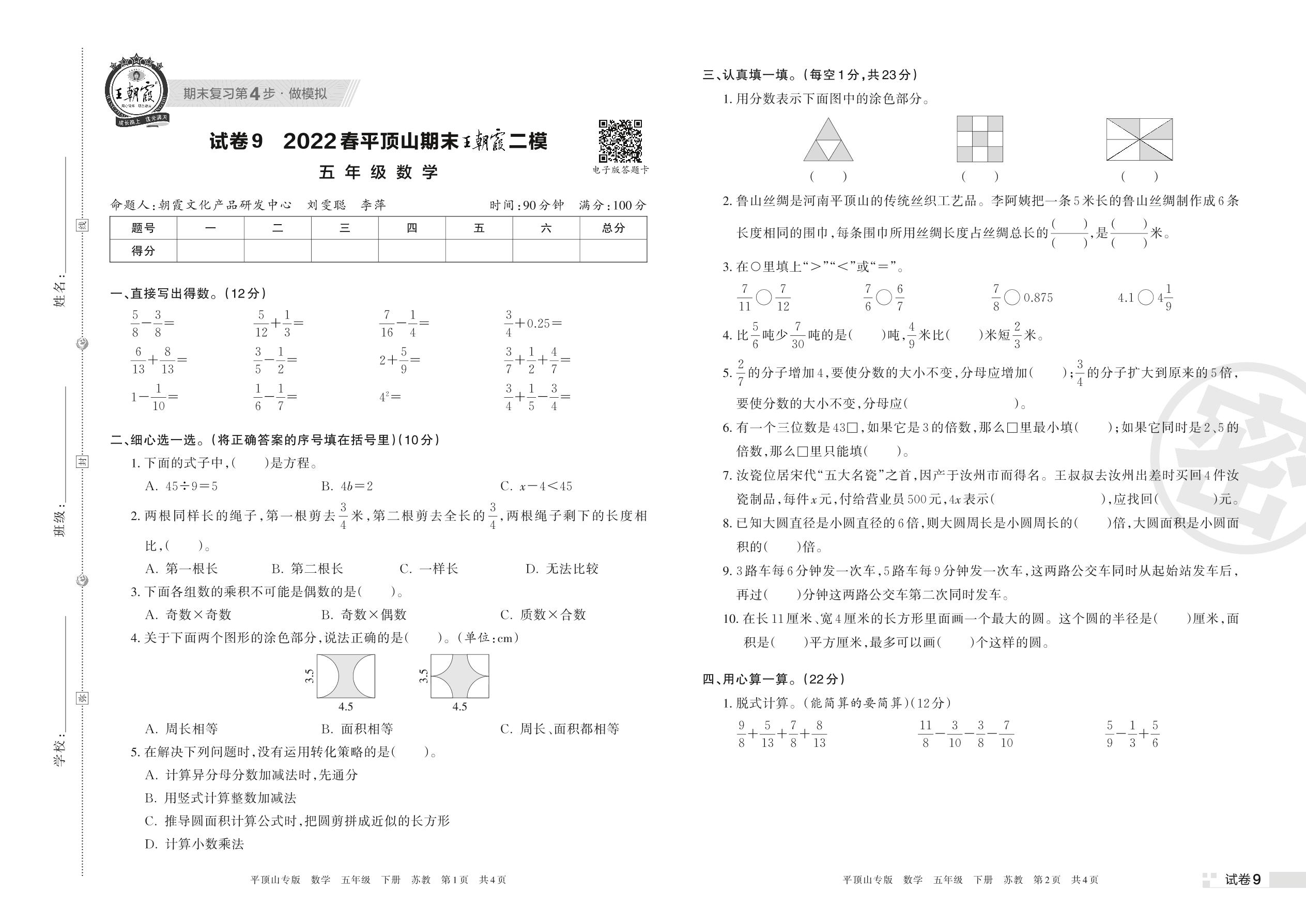 王朝霞期末模拟卷五年级下册数学(苏教版)_R220408102405145【9】