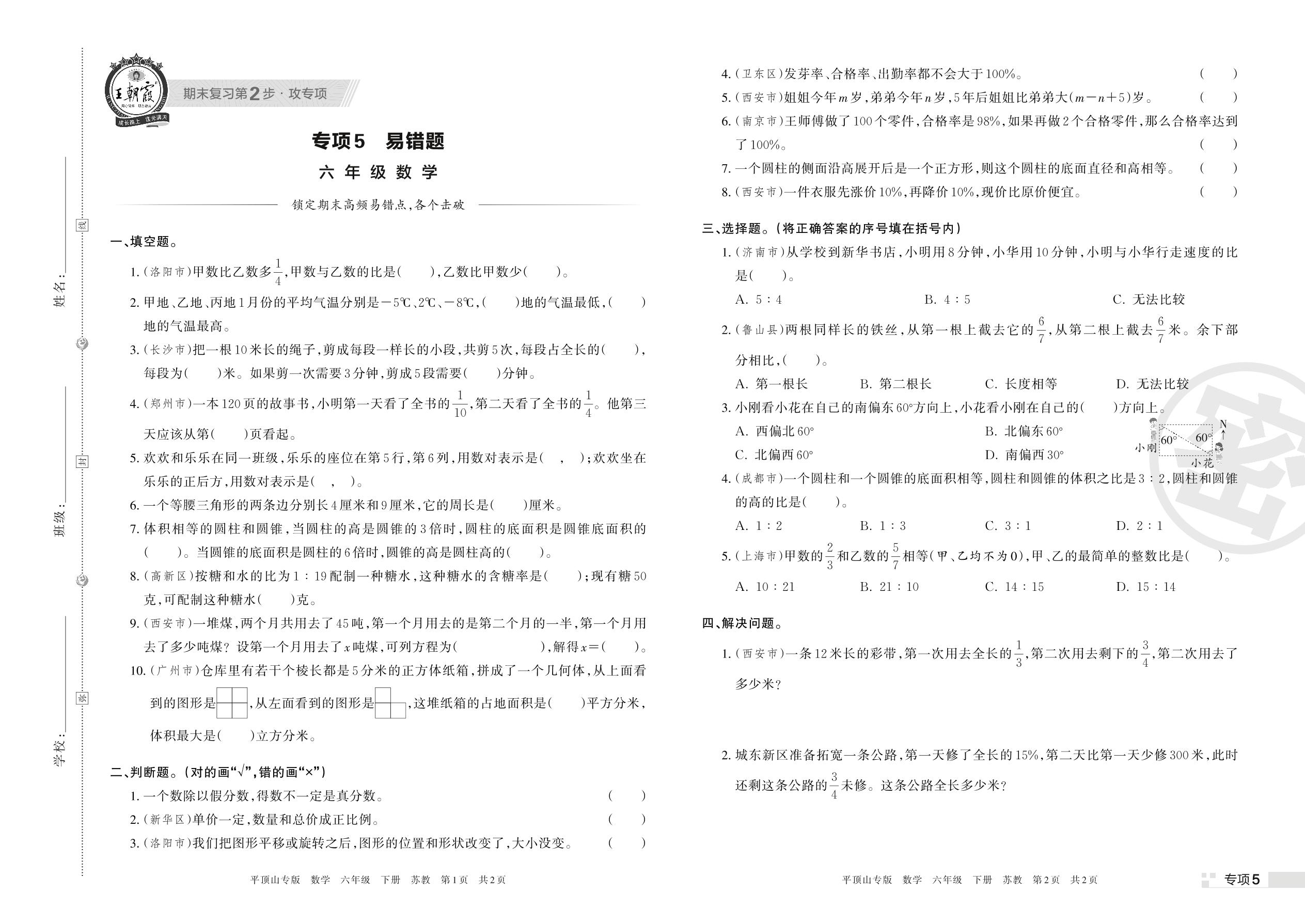 王朝霞期末专项卷——易错题六年级下册数学(苏教版)_R220408102931756【5】