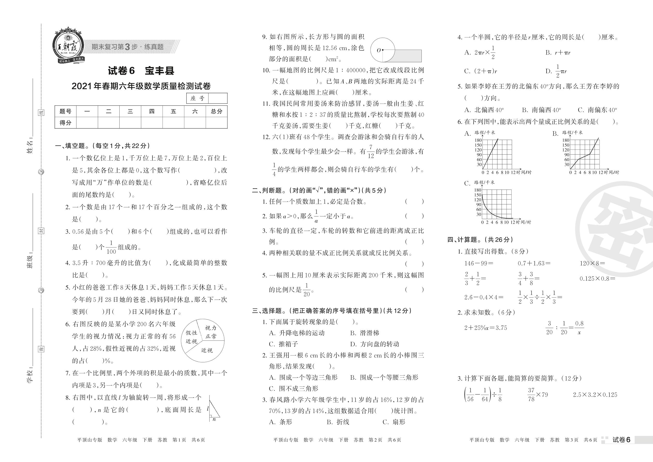 宝丰县2021年春期六年级数学质量检测试卷(苏教版)【6】