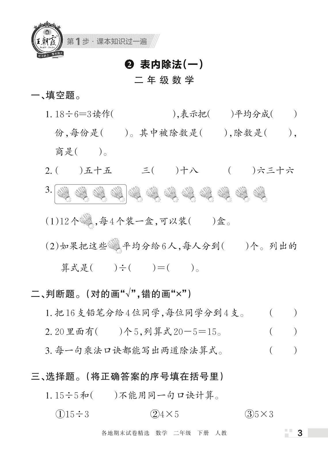 王朝霞期末过课本——2 表内除法(一)二年级下册数学(人教版)