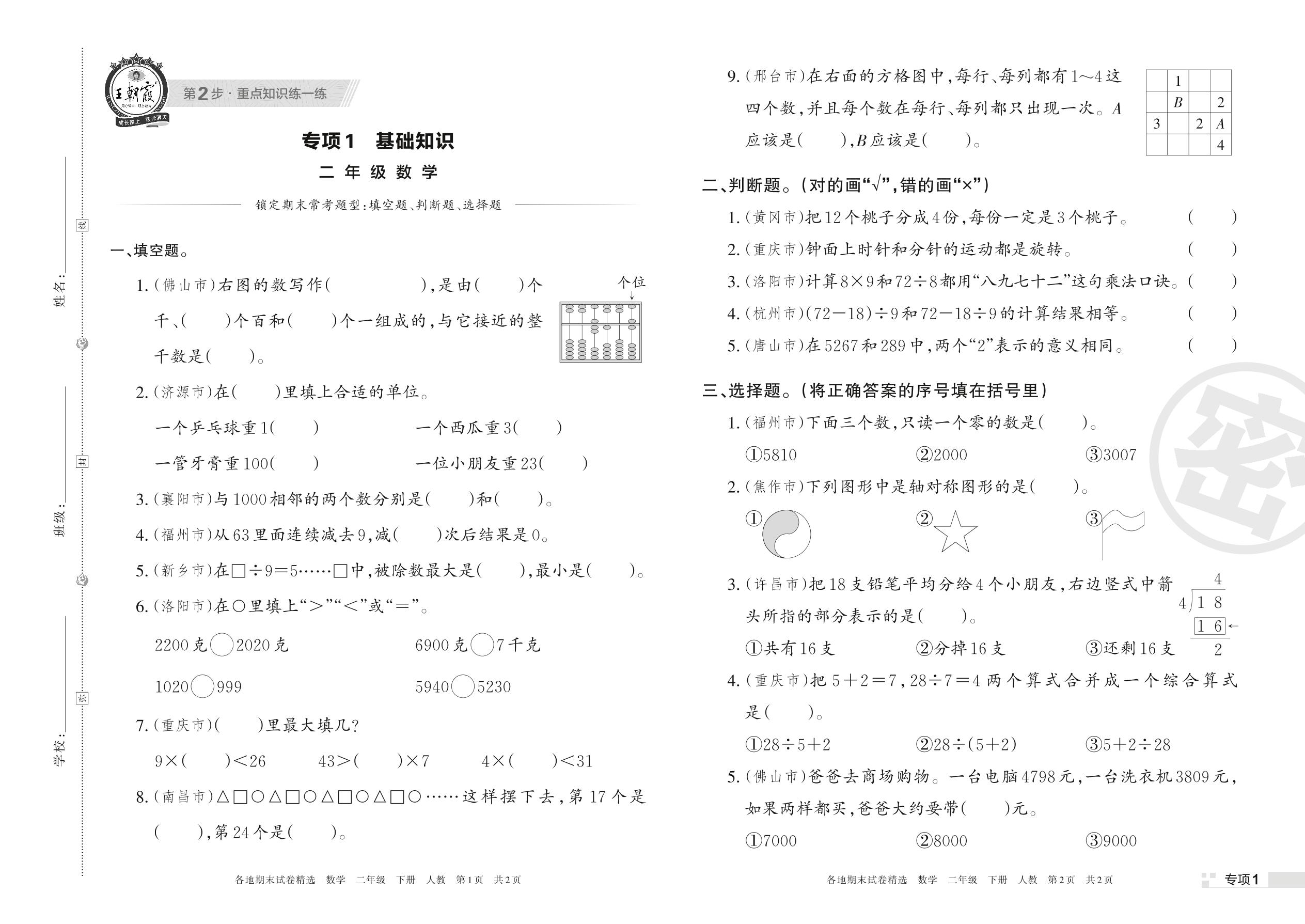王朝霞期末专项卷——基础知识二年级下册数学(人教版)【1】2154841231561