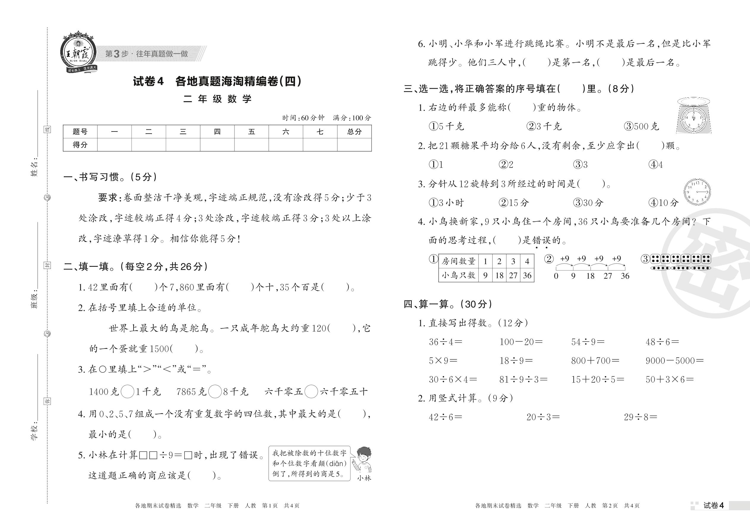 各地真题海淘精编卷(四)二年级下册数学(人教版)【4】