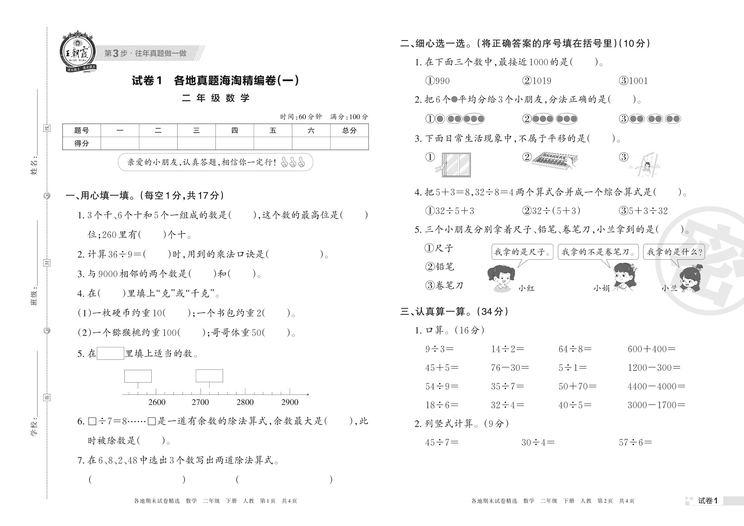 各地真题海淘精编卷(一)二年级下册数学(人教版)【1】