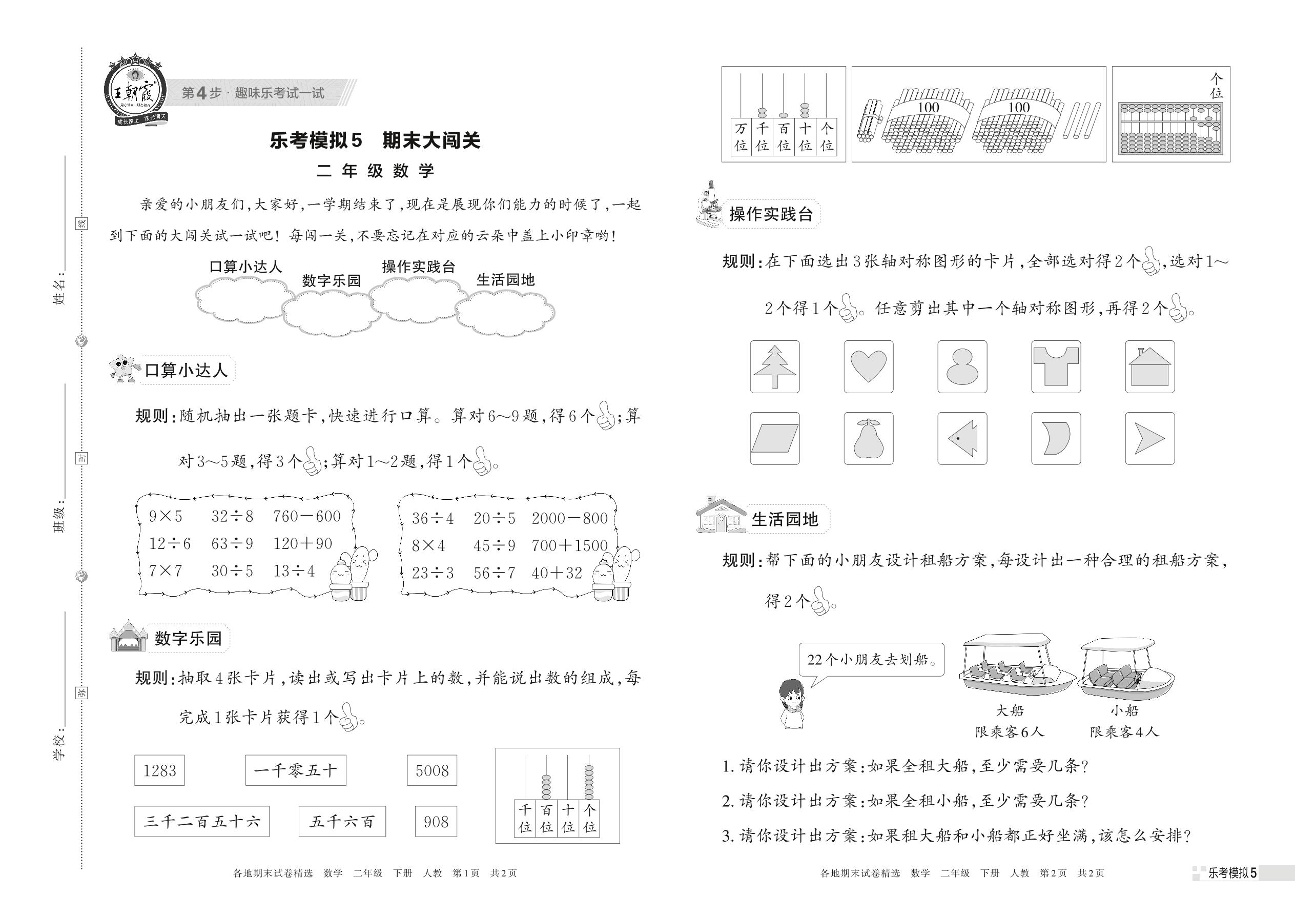 乐考模拟5 期末大闯关二年级下册数学(人教版)