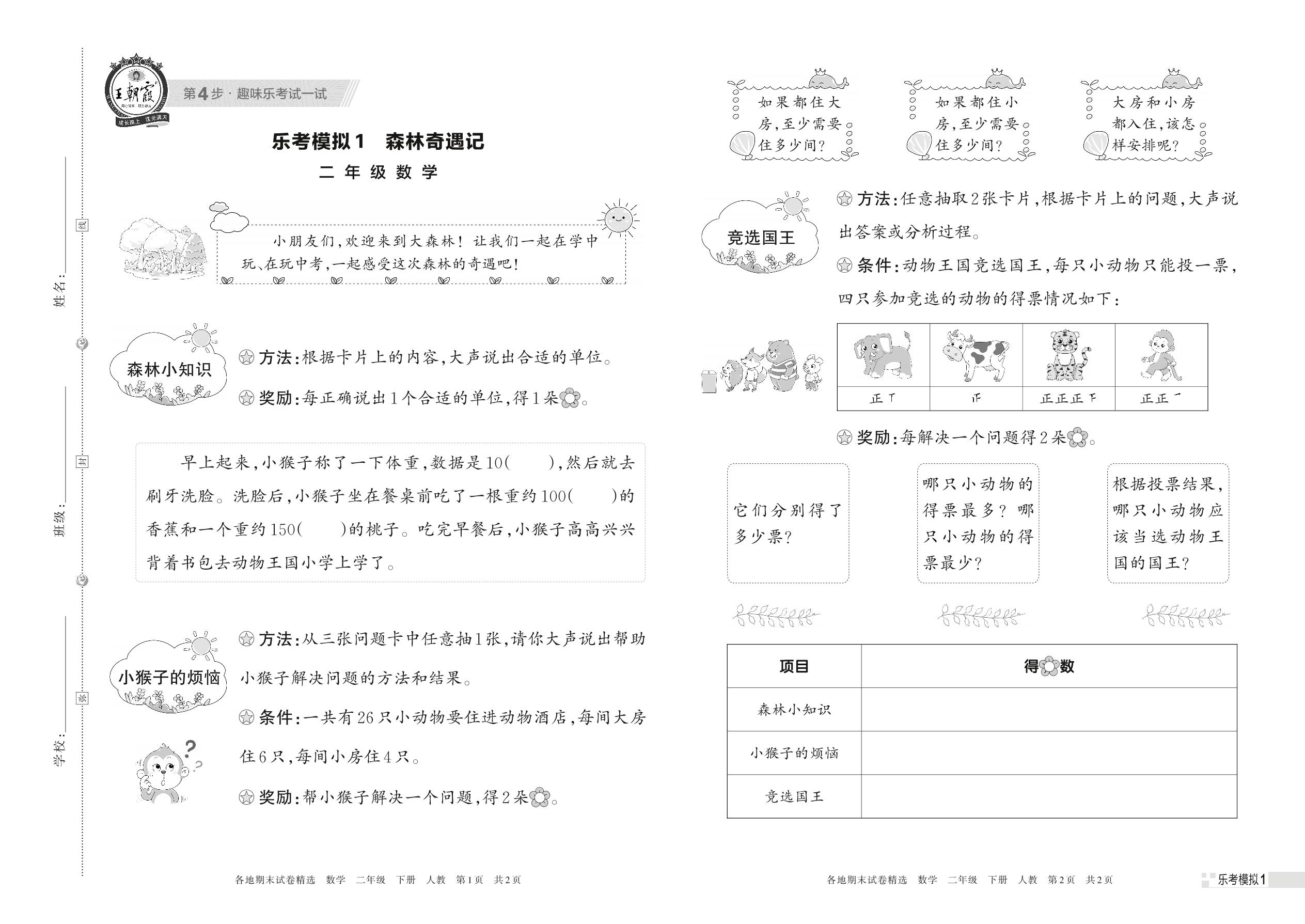 乐考模拟1 森林奇遇记二年级下册数学(人教版)