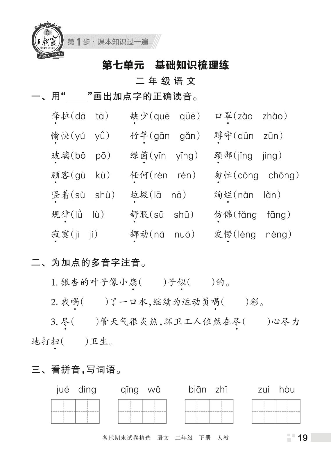 王朝霞期末过课本——第七单元 基础知识梳理练二年级下册语文(人教版)
