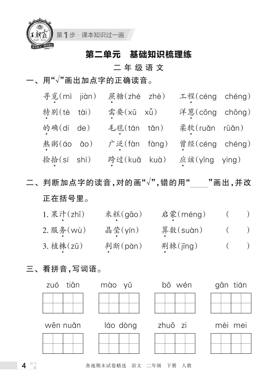 王朝霞期末过课本——第二单元 基础知识梳理练二年级下册语文(人教版)