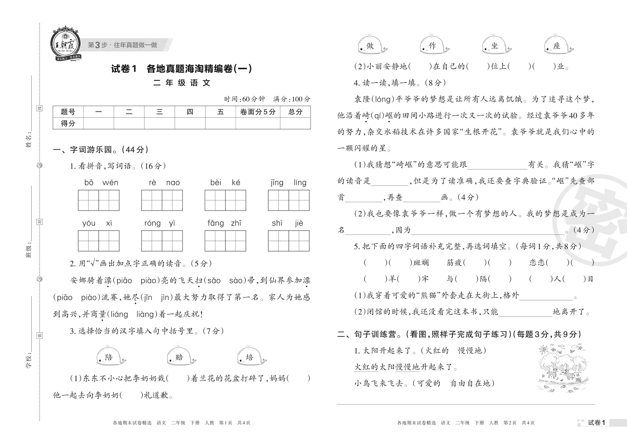 二年级语文人教版下册期末卷
