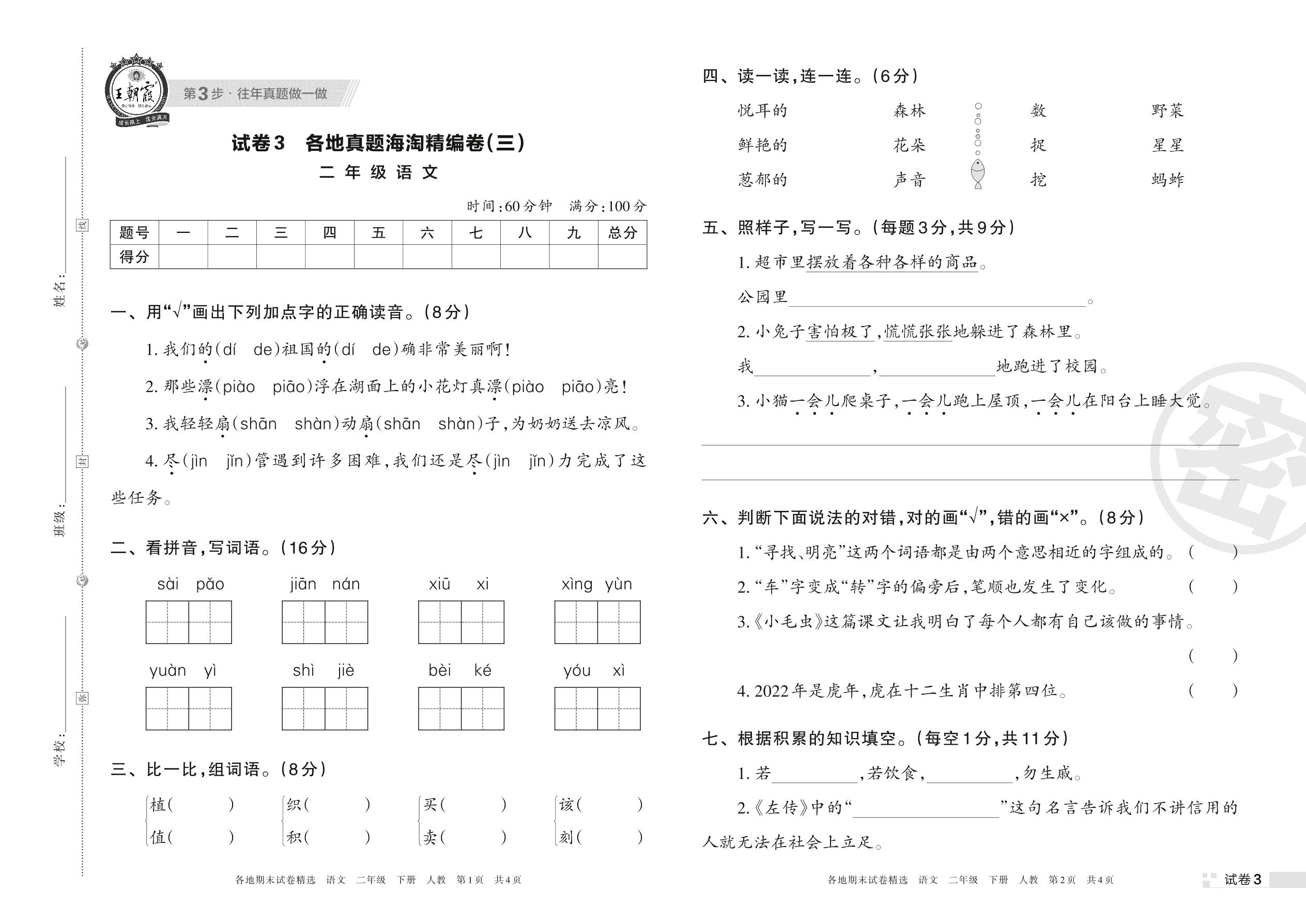 各地真题海淘精编卷(三)二年级下册语文(人教版)【3】