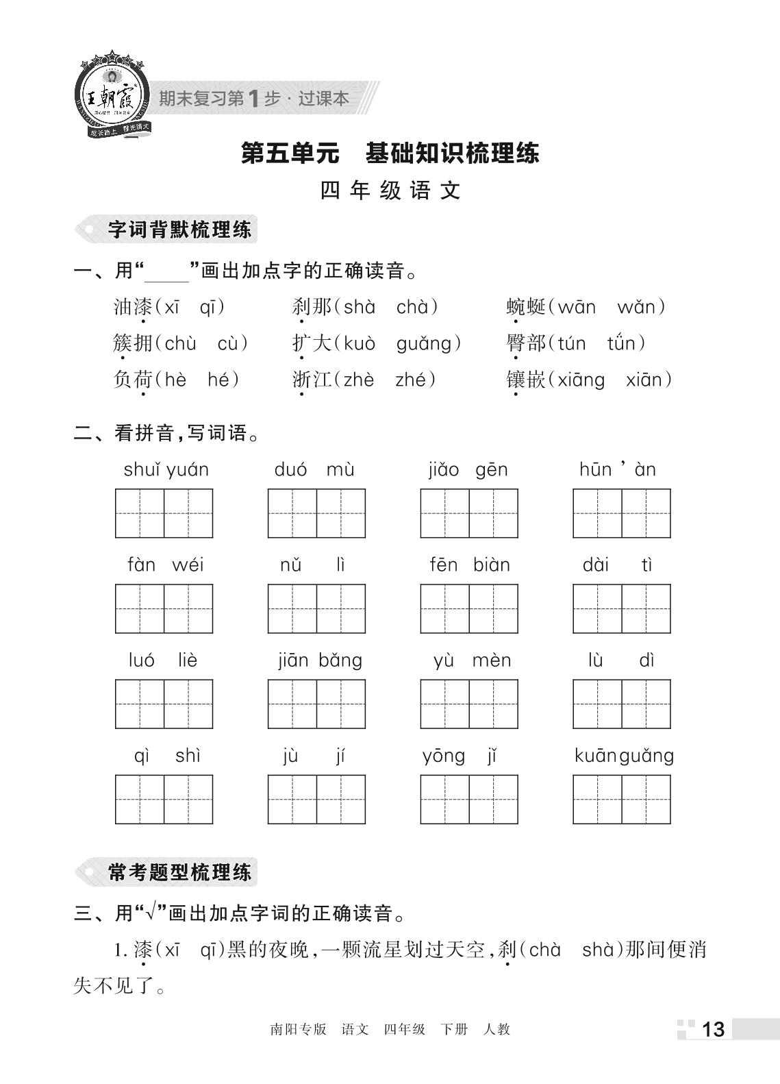 王朝霞期末过课本——第五单元 基础知识梳理练四年级下册语文(人教版)_R220408155126735
