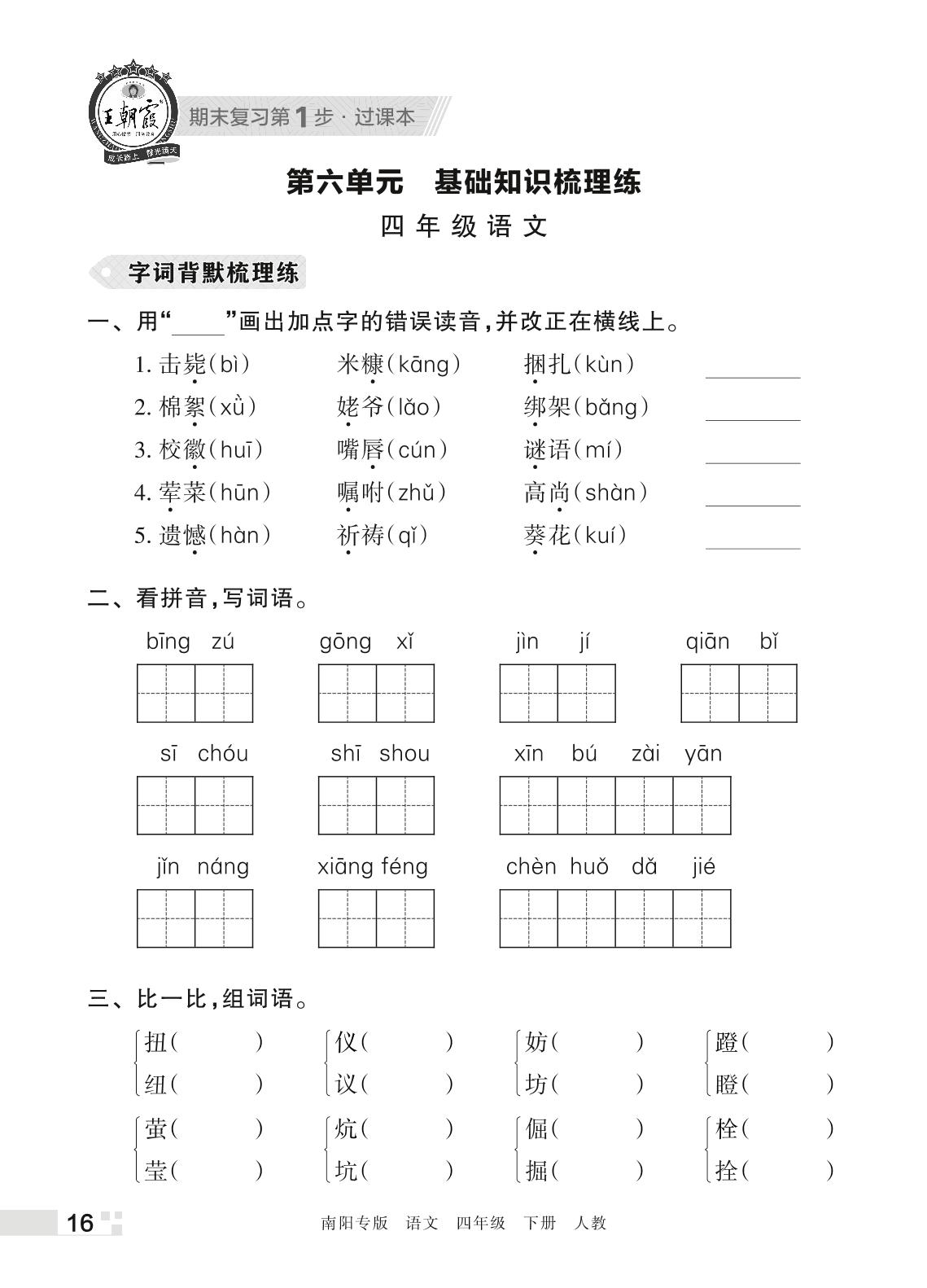 王朝霞期末过课本——第六单元 基础知识梳理练四年级下册语文(人教版)_R220408155126615