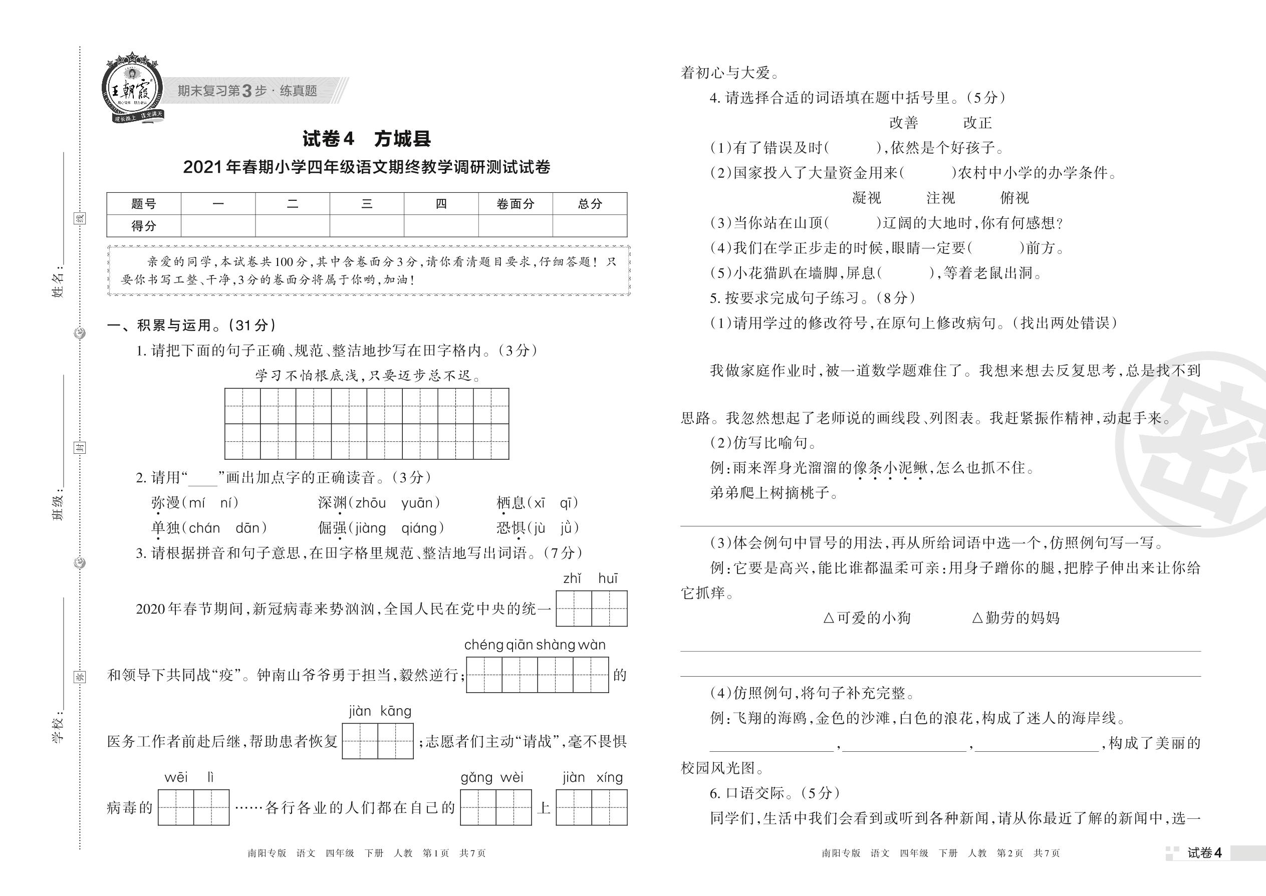 四年级语文人教版下册期末卷