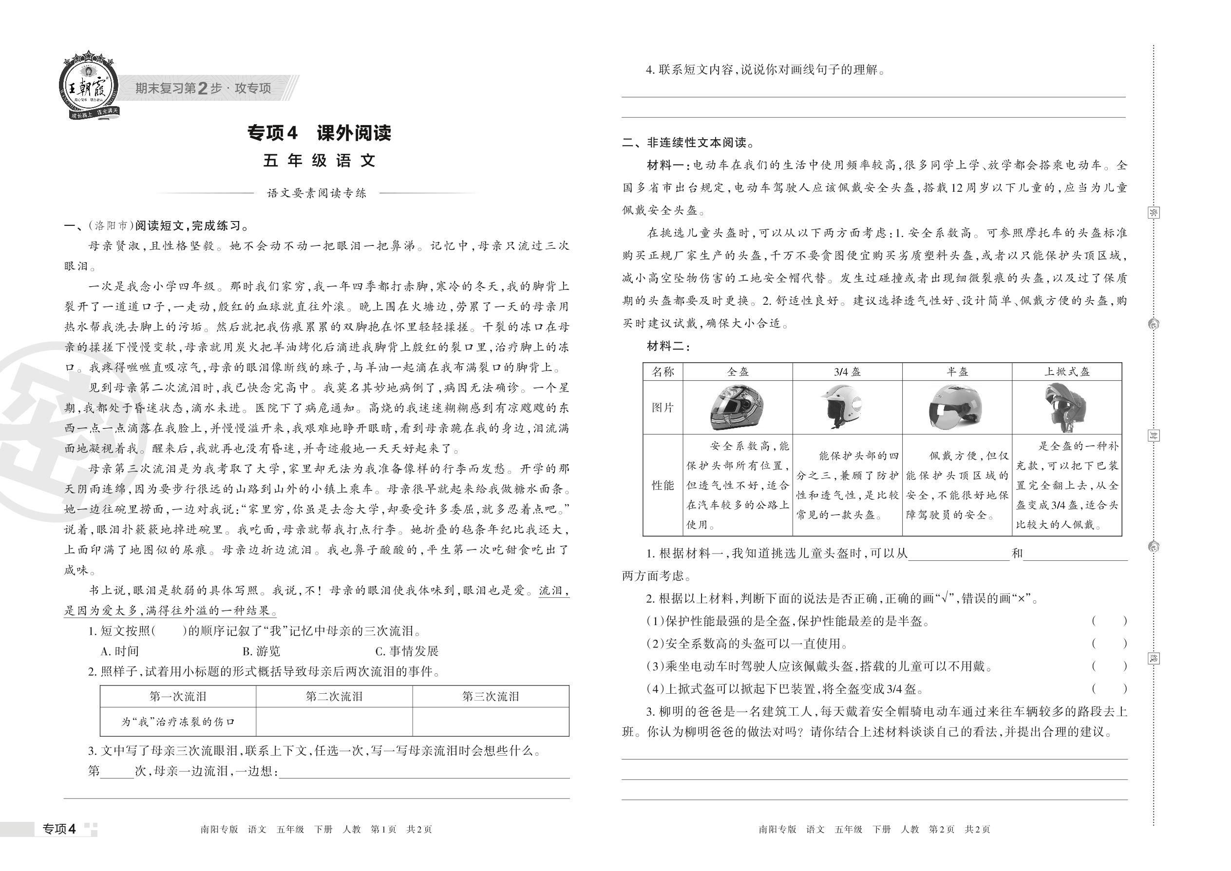 王朝霞期末专项卷——课外阅读五年级下册语文(人教版)_R220408155754148【4】