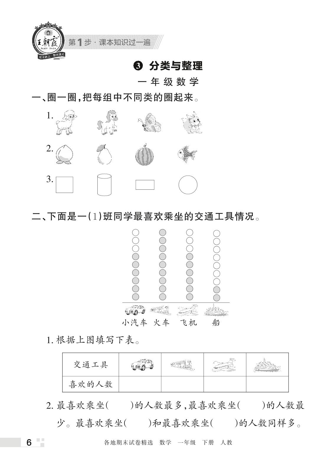 王朝霞期末过课本——3 分类整理一年级下册数学(人教版)