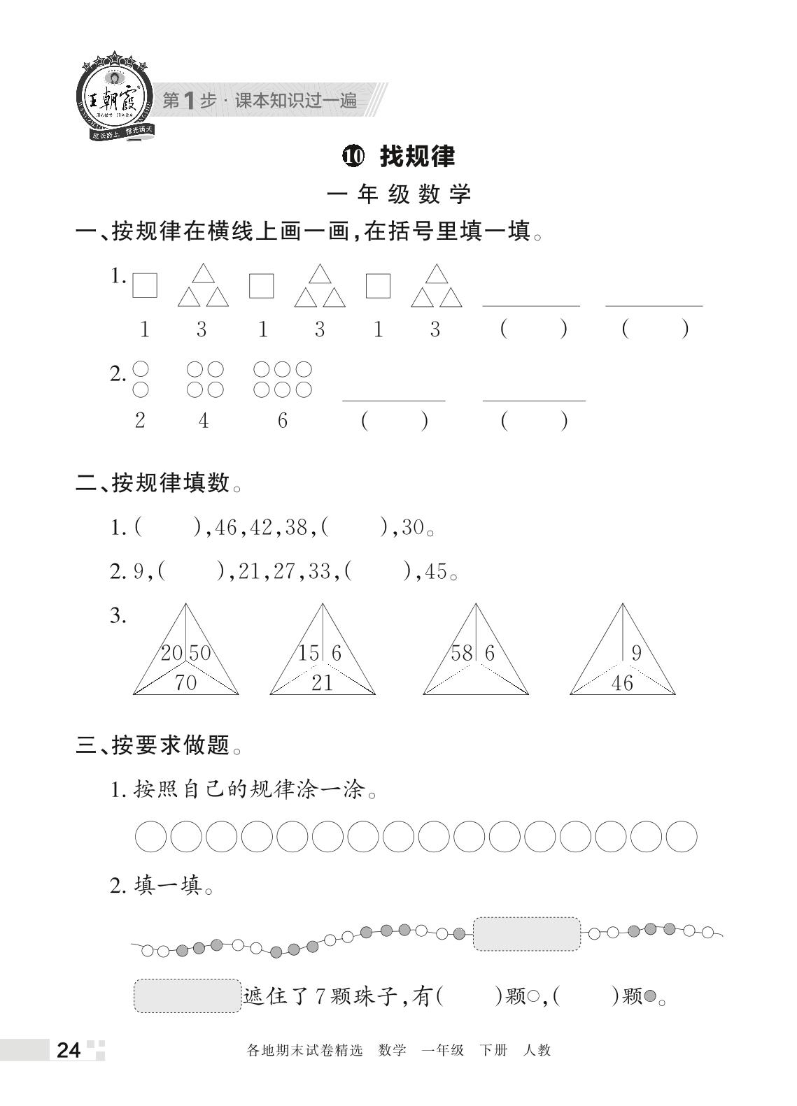 王朝霞期末过课本——10 找规律一年级下册数学(人教版)