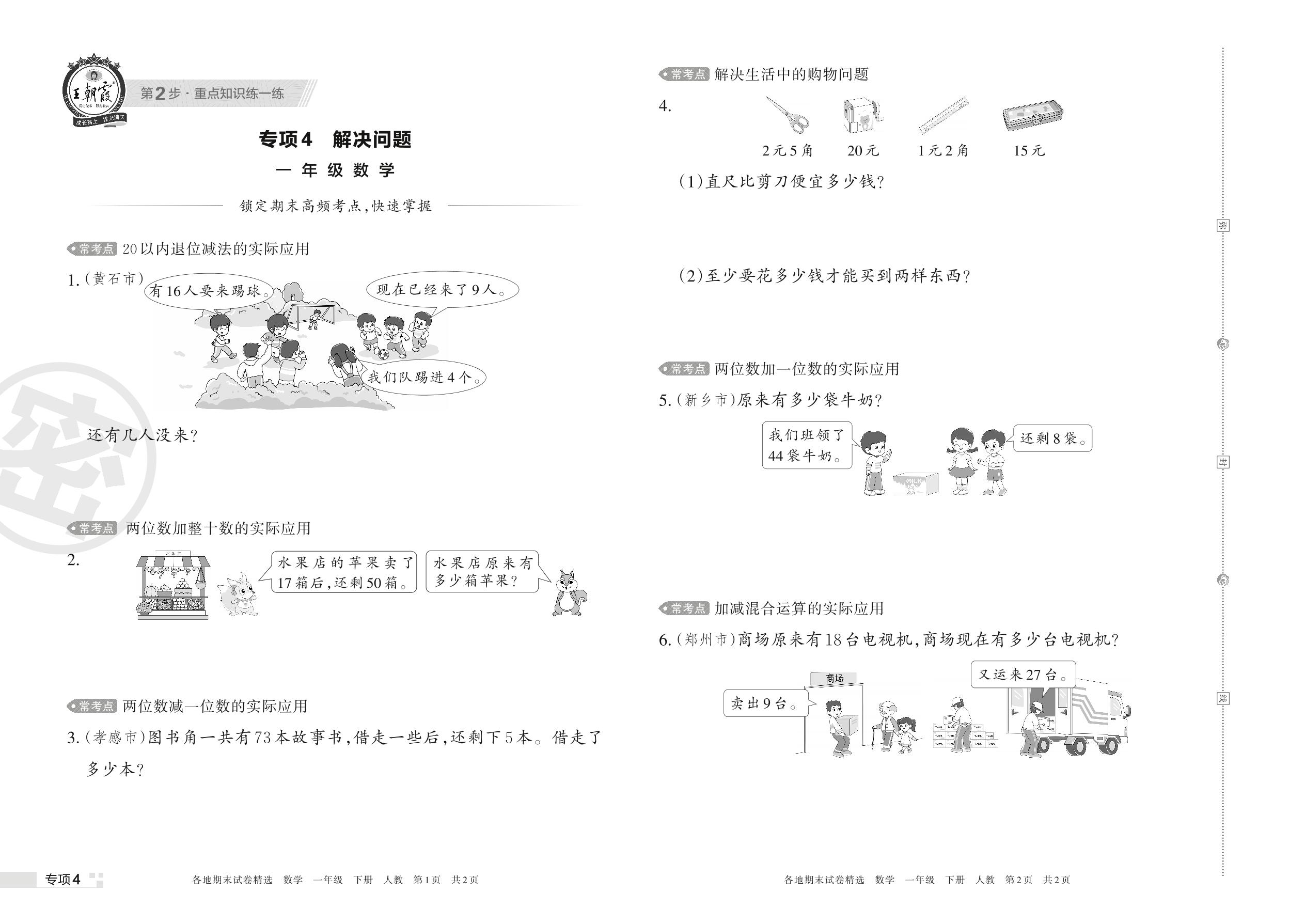 王朝霞期末专项卷——解决问题一年级下册数学(人教版)【4】