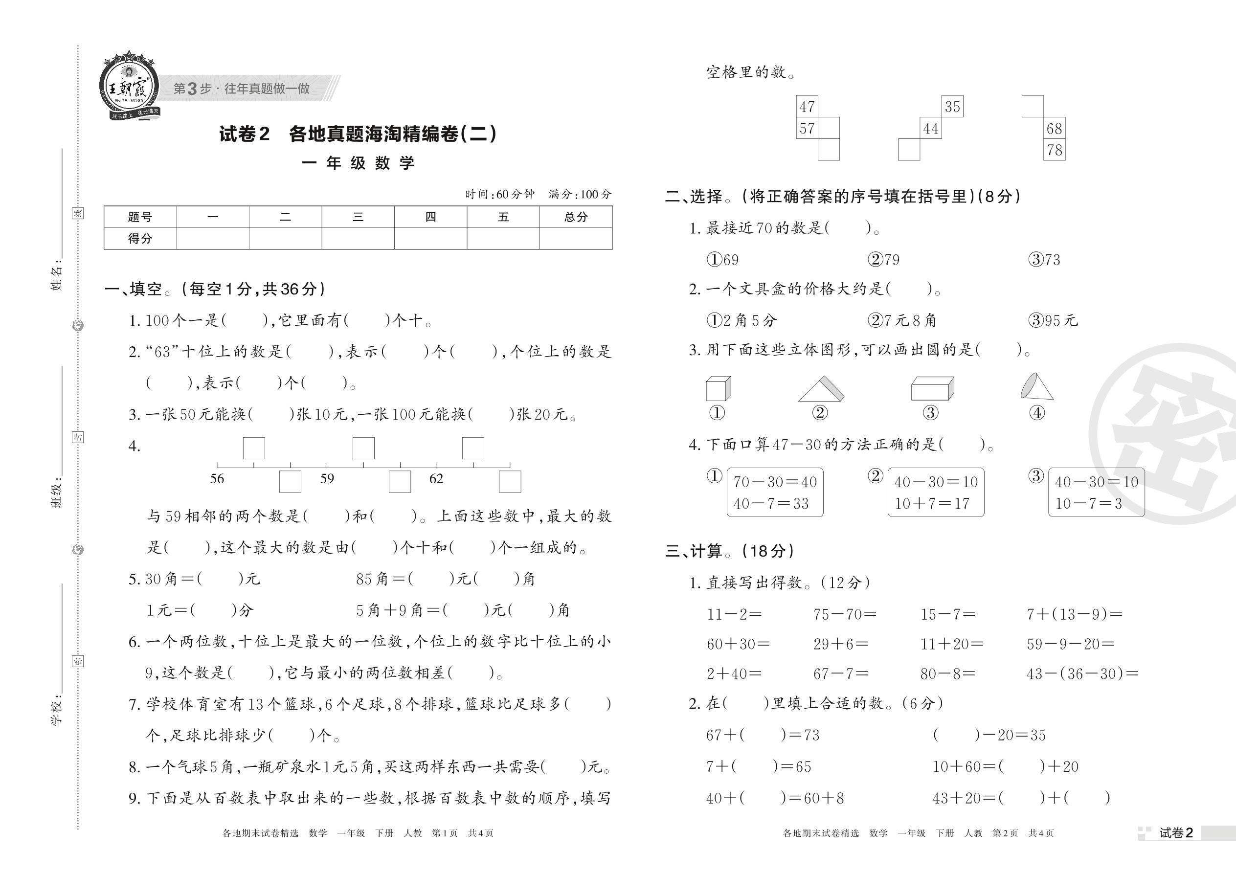 各地真题海淘精编卷(二)一年级下册数学(人教版)【2】
