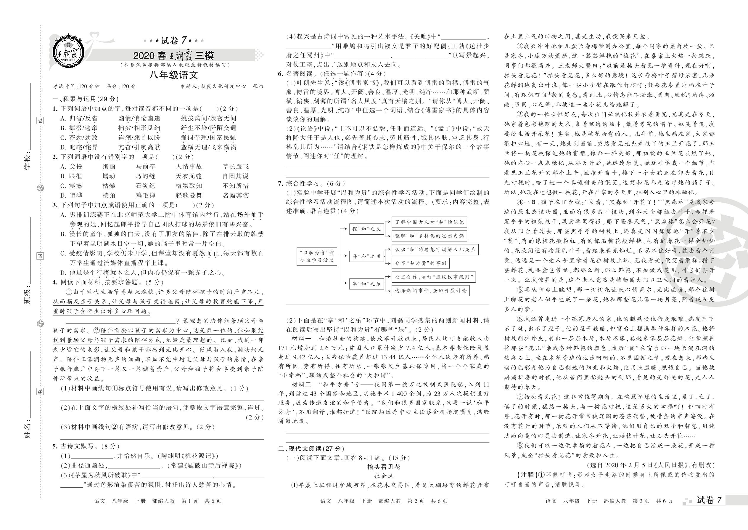 王朝霞期末模拟卷八年级下册语文(人教版)_R21080222033【7】