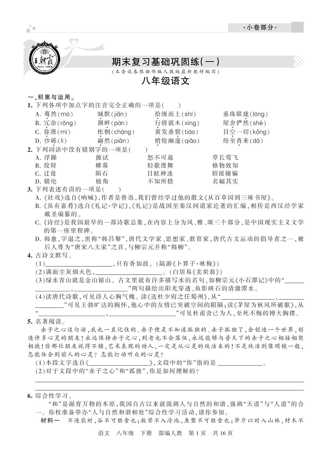 王朝霞期末小卷——期末复习基础巩固练八年级下册语文(人教版)_R21080222046【0】