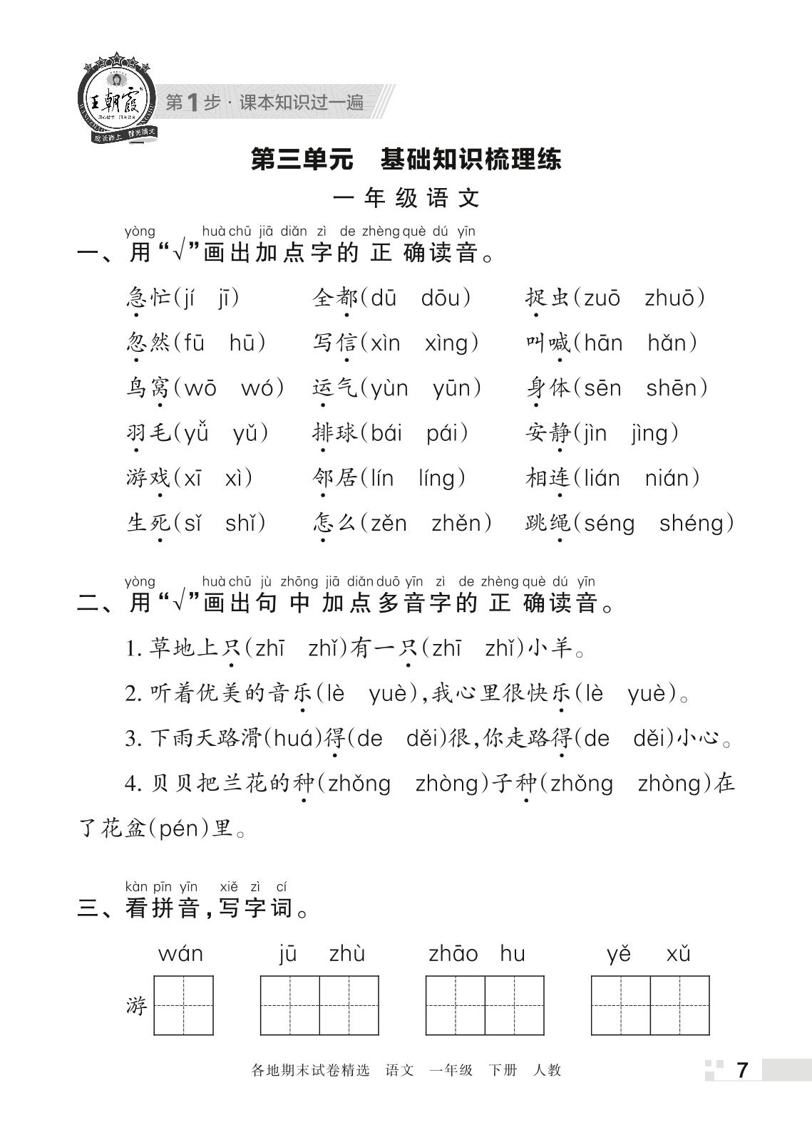 王朝霞期末过课本——第三单元 基础知识梳理练一年级下册语文(人教版)