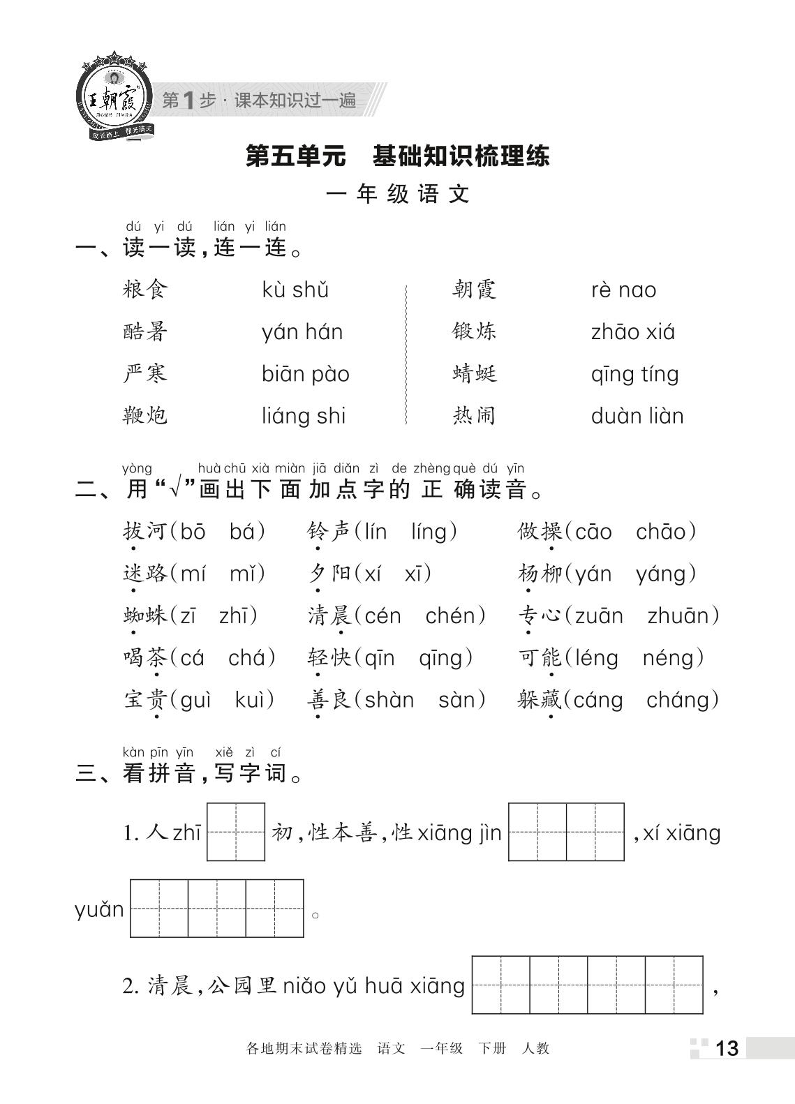王朝霞期末过课本——第五单元 基础知识梳理练一年级下册语文(人教版)