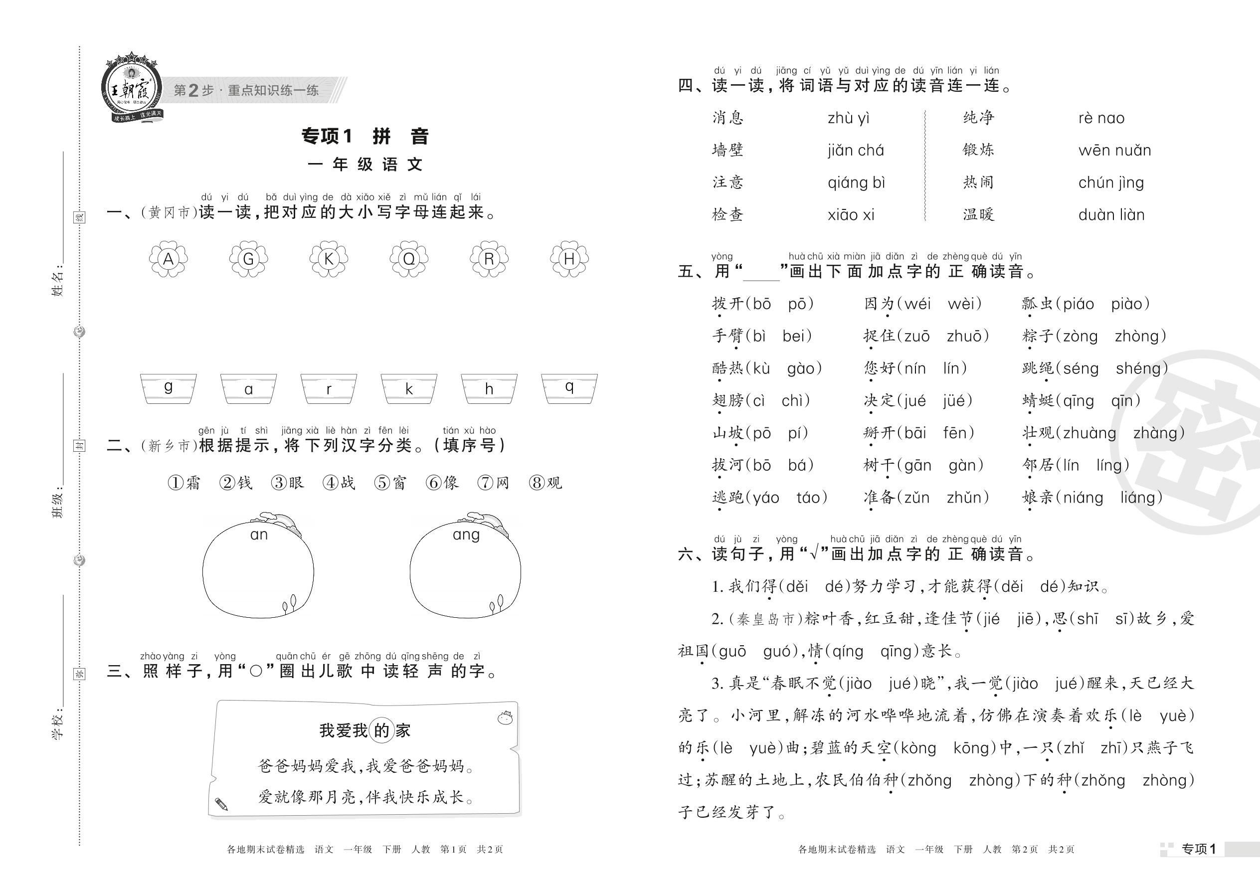 王朝霞期末专项卷——拼音一年级下册语文(人教版)【1】