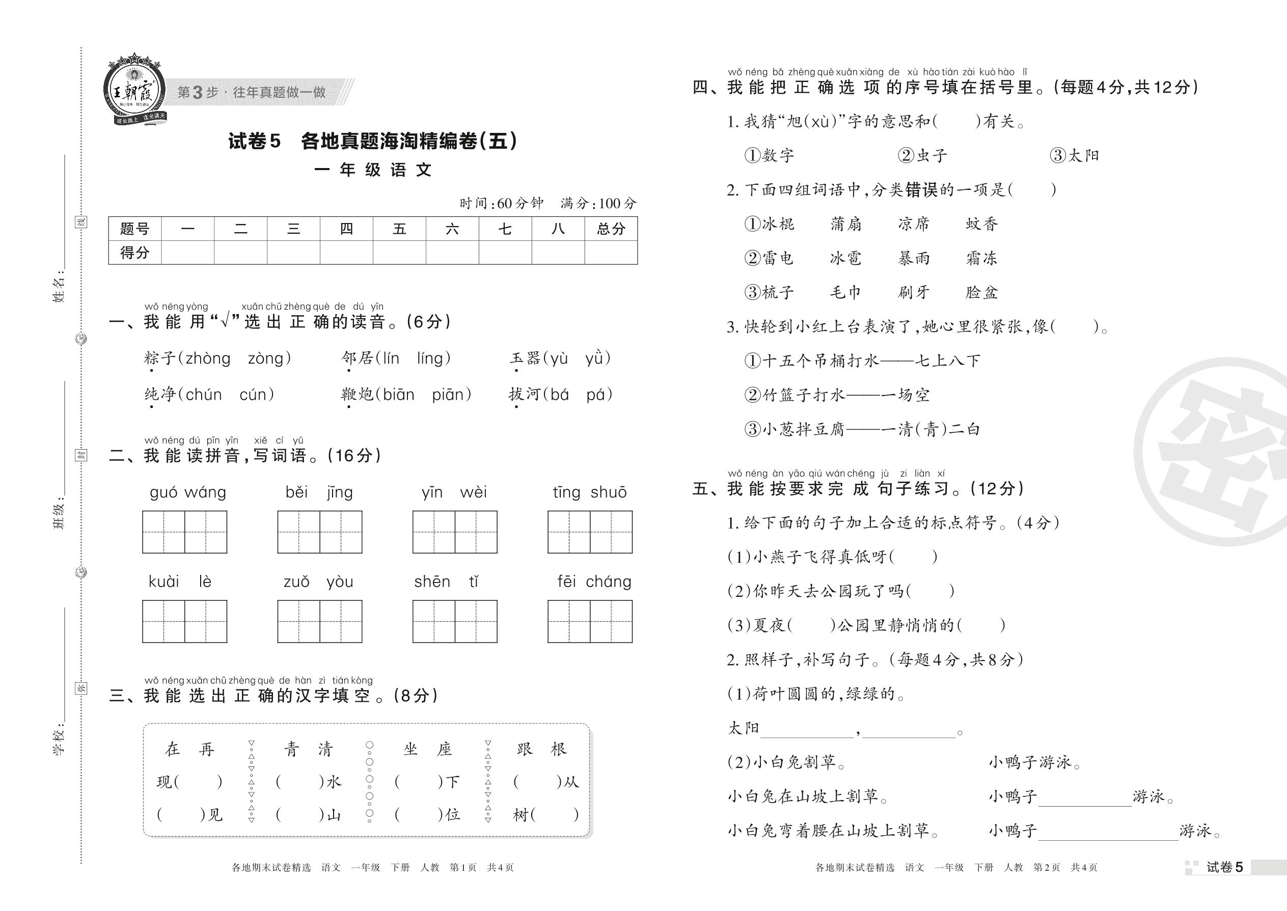各地真题海淘精编卷(五)一年级下册语文(人教版)【5】