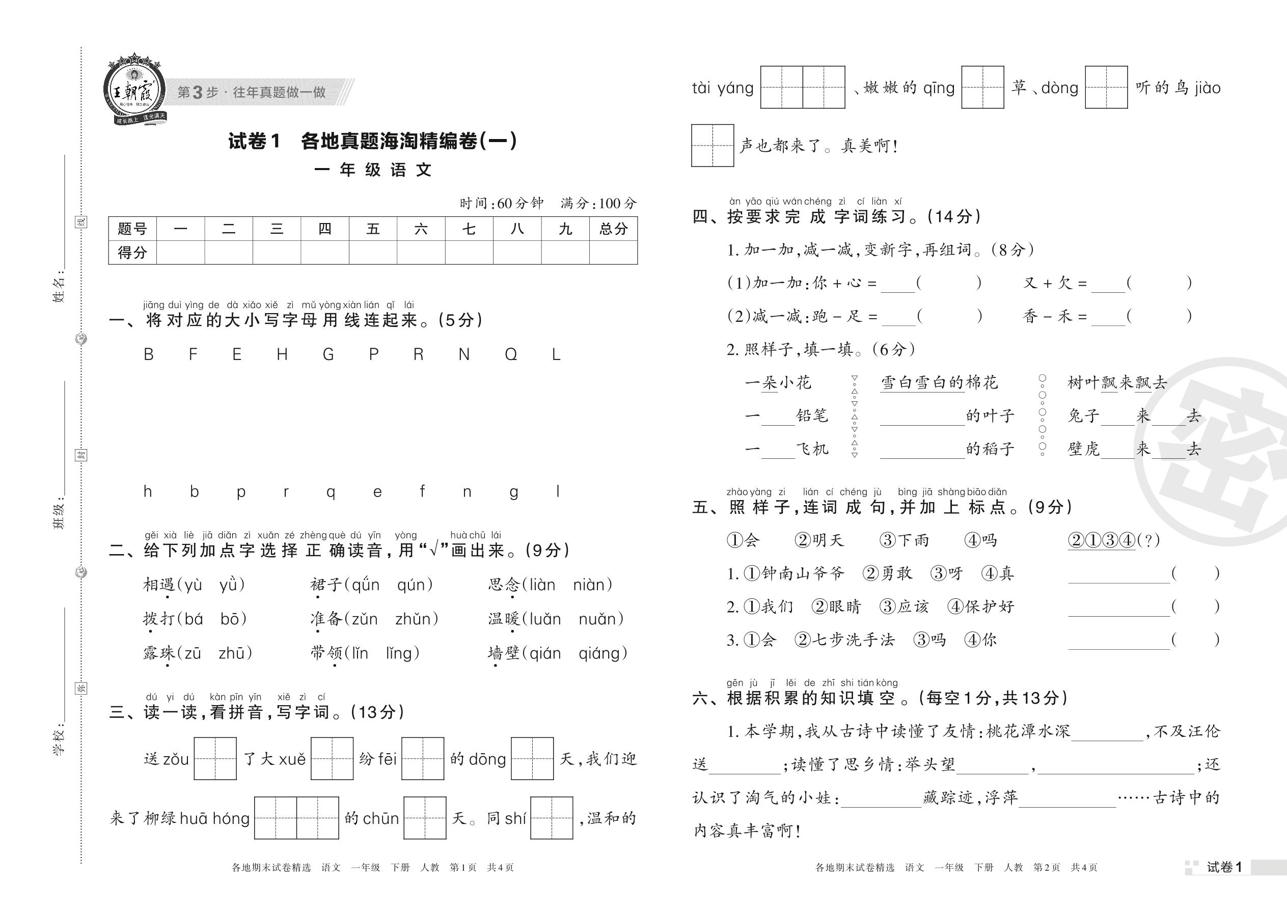 一年级语文人教版下册期末卷
