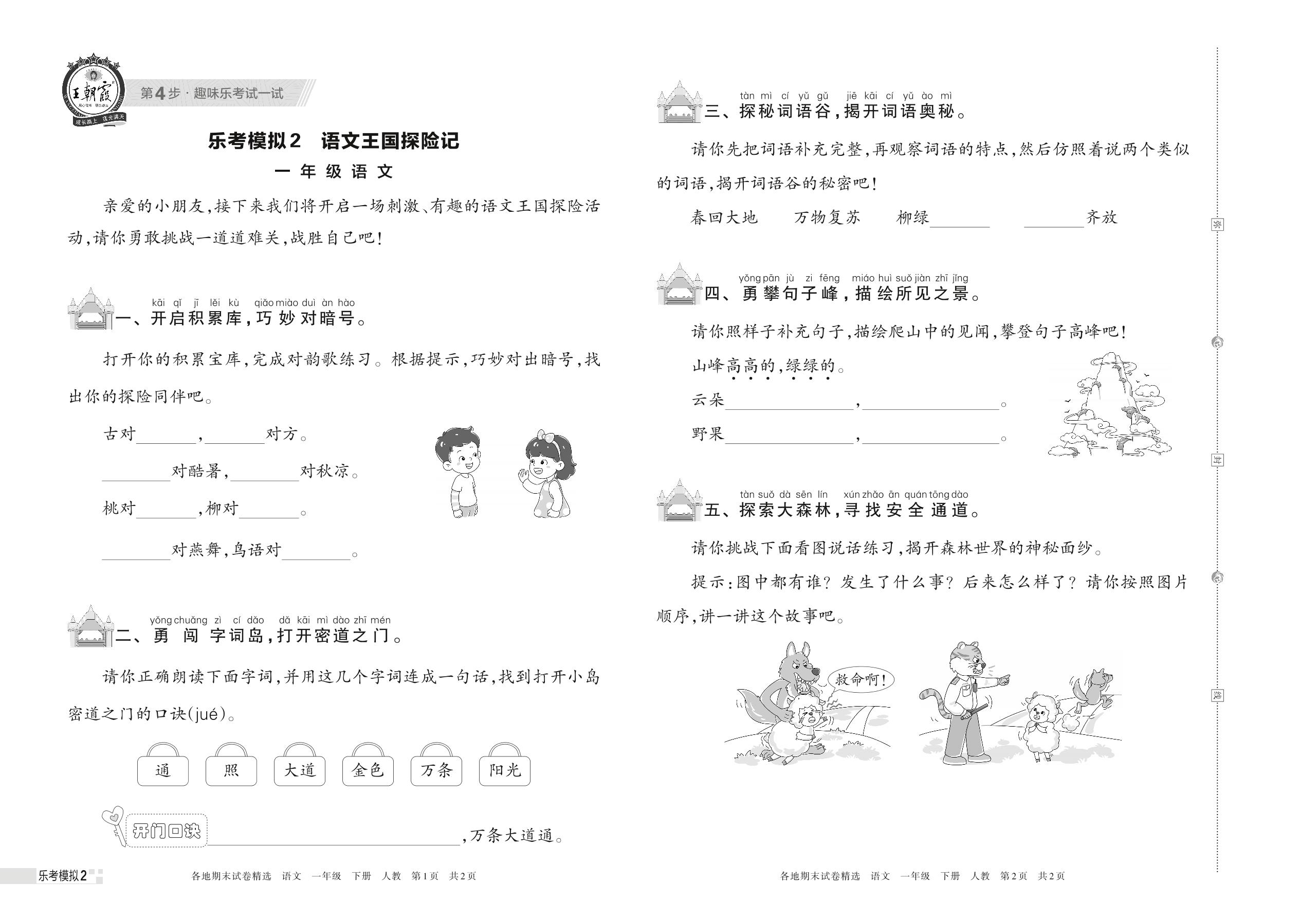 乐考模拟2 语文王国探险记一年级下册语文(人教版)