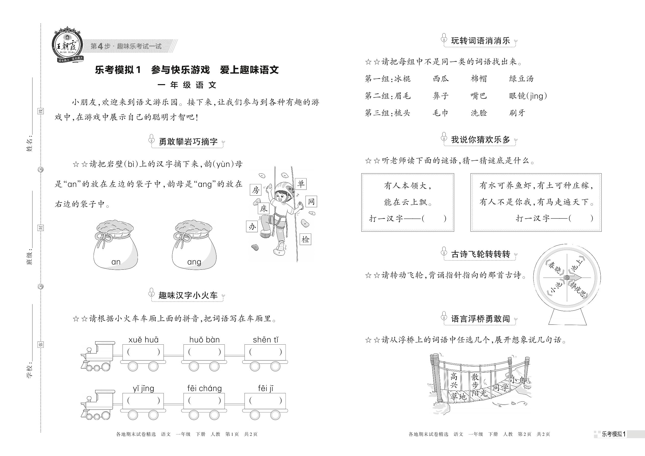 乐考模拟1 参与快乐游戏 爱上趣味语文一年级下册语文(人教版)