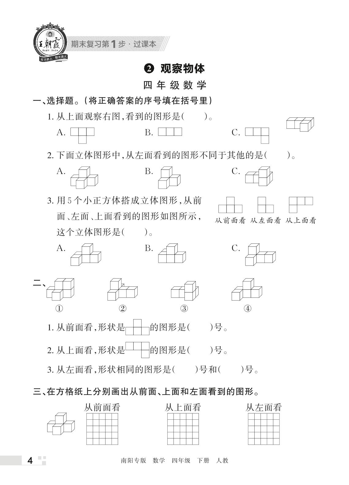 王朝霞期末过课本——2 观察物体四年级下册数学(人教版)_R220408162935643