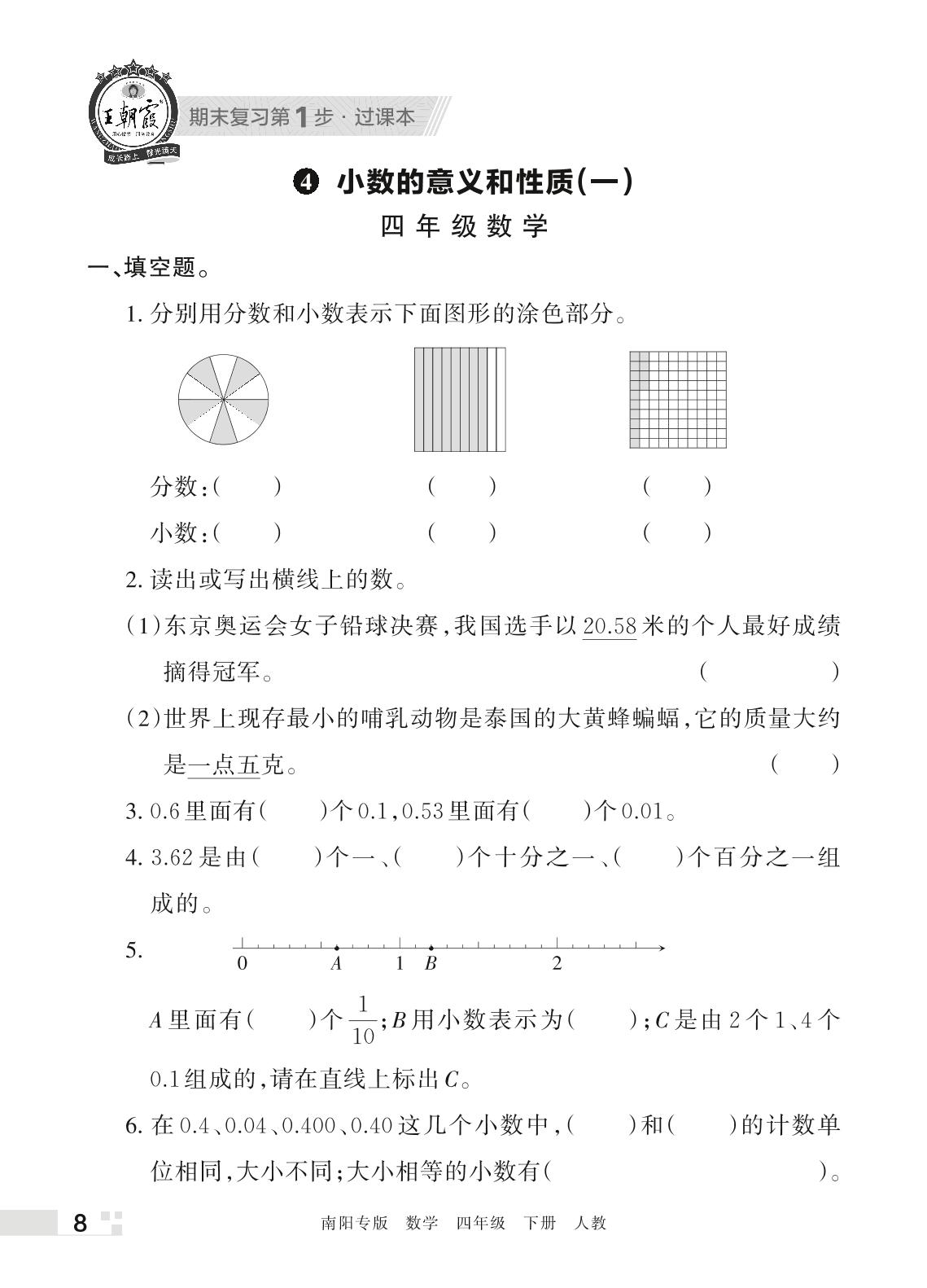 王朝霞期末过课本——4 小数的意义和性质(一)四年级下册数学(人教版)_R220408162935567