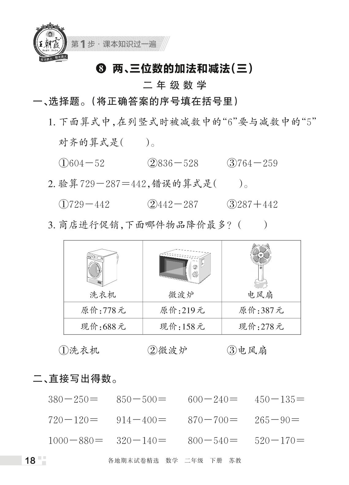 王朝霞期末过课本——8 两、三位数的加法和减法(三)二年级下册数学(苏教版)