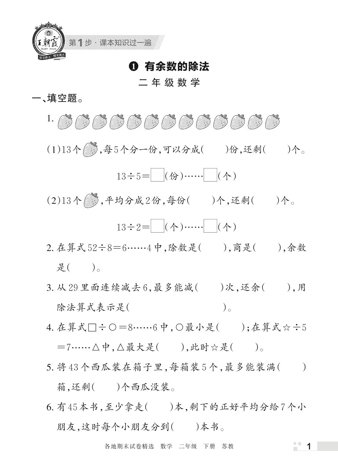 王朝霞期末过课本——1 有余数的除法二年级下册数学(苏教版)