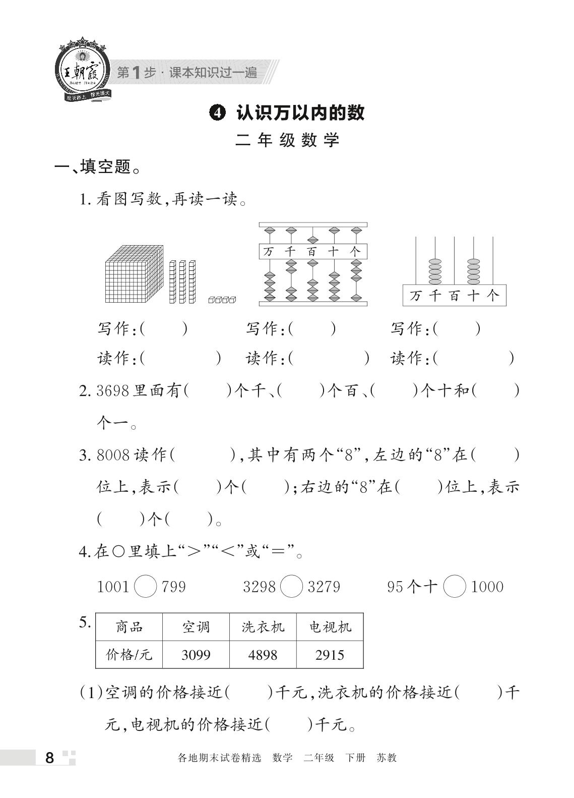 王朝霞期末过课本——4 认识万以内的数二年级下册数学(苏教版)