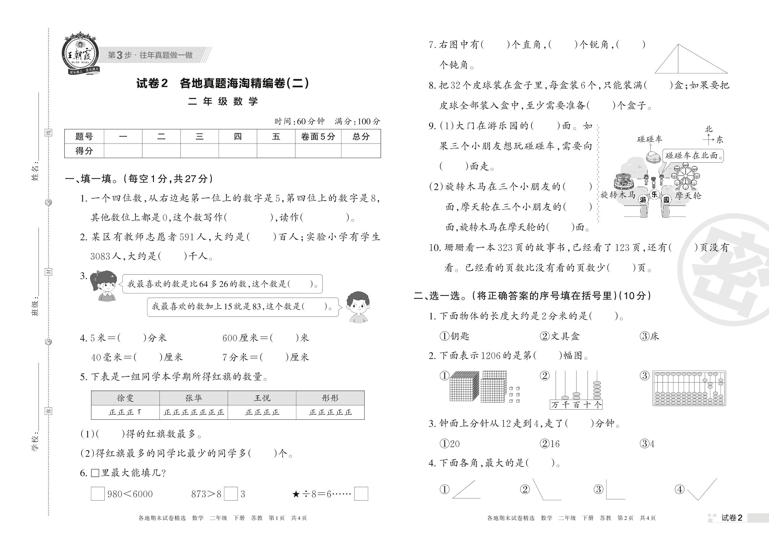 各地真题海淘精编卷(二)二年级下册数学(苏教版)【2】