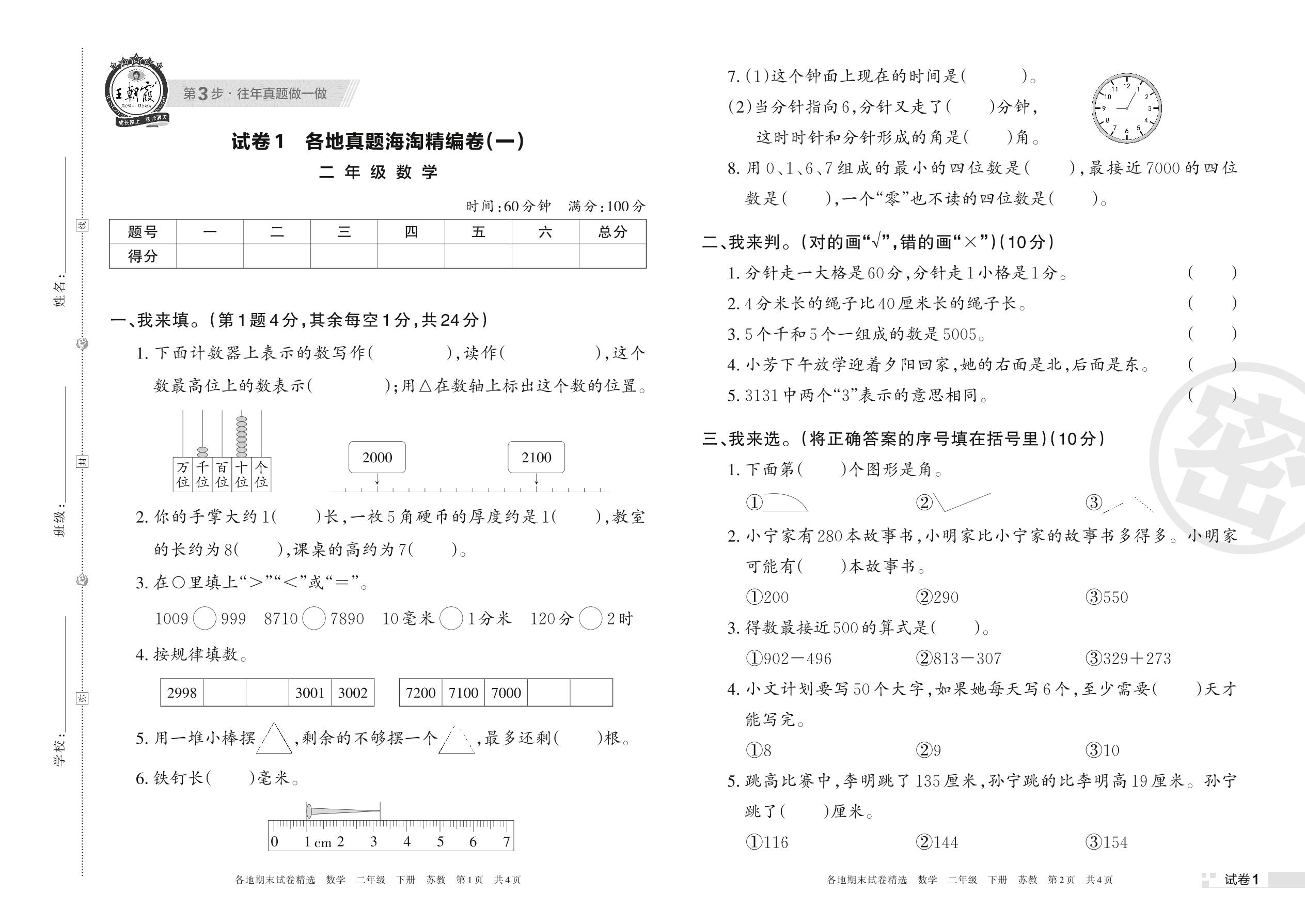 各地真题海淘精编卷(一)二年级下册数学(苏教版)【1】